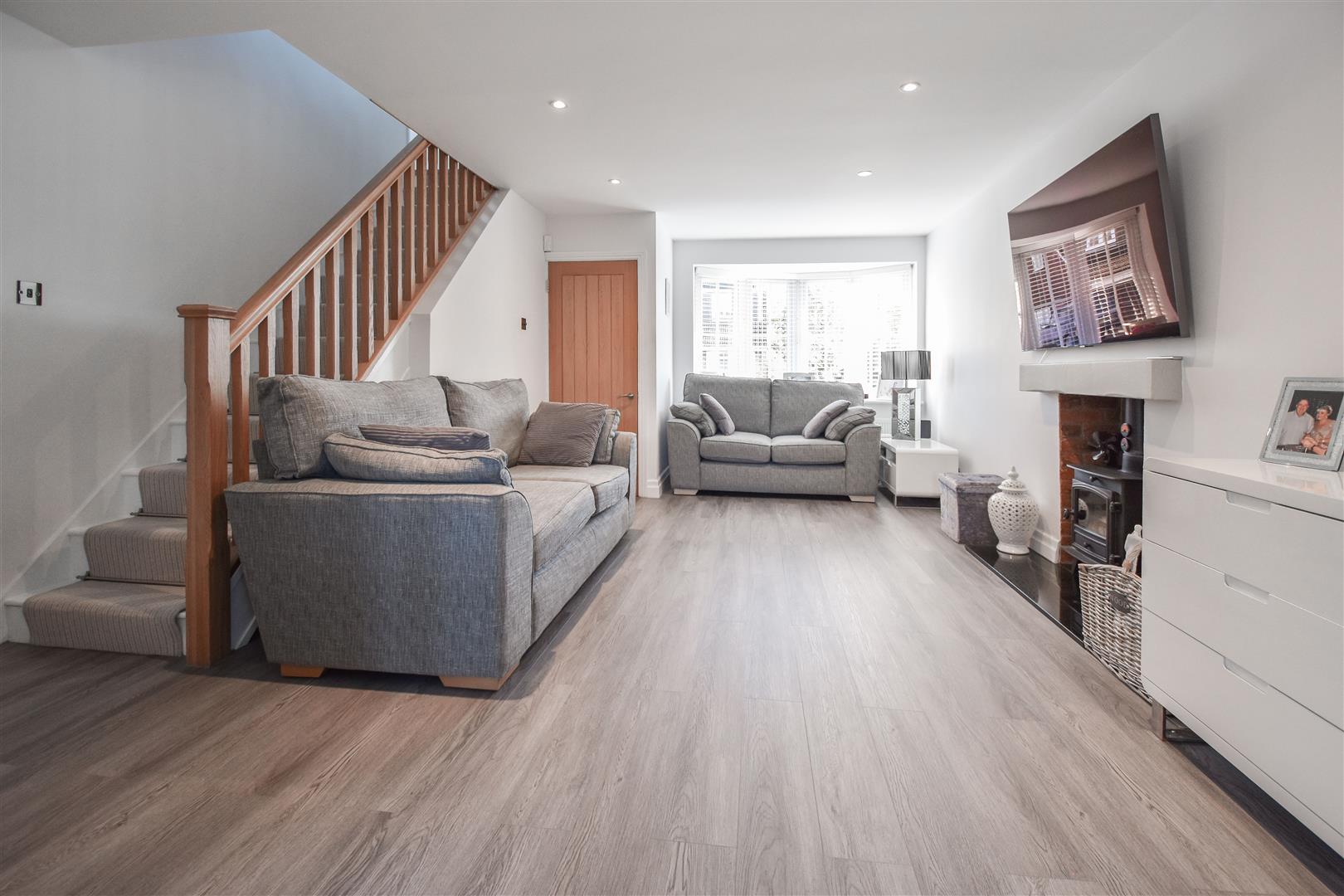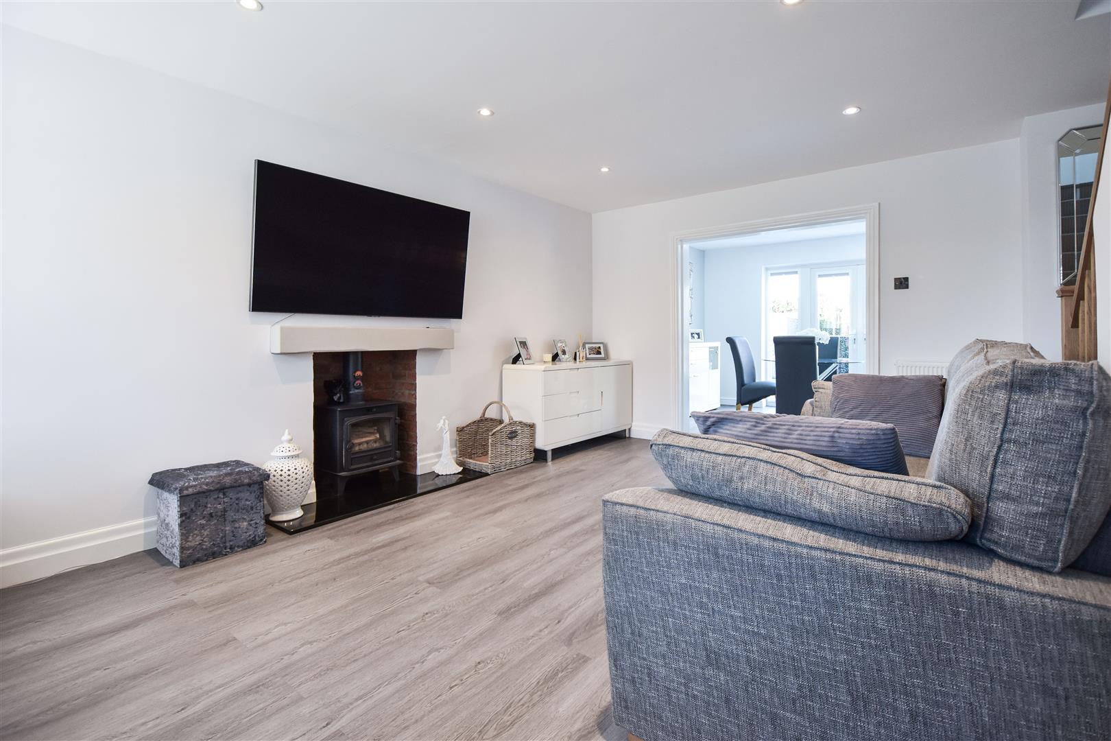 The entrance hall located at the front of the property gives access into the family room, lounge and a modern ground floor cloakroom with space saver wash hand basin and w.c. The family room is a bright room which is open to the utility room, where you have work surface and shelving, space and plumbing for a washing machine and tumble dryer and access into the garden from the side of the house. The main reception room is a bright and spacious lounge with a cosy log burning stove as a nice feature in this room. Stairs with oak balustrade and handrail rises to the first floor. The lounge is open plan to a modern kitchen / diner, where there is additional access into the garden via French doors. The kitchen area has been fitted in a stylish range of white wall and base units with quartz work surface over, and there is a peninsular breakfast bar with seating to one side. Integrated appliances include double ovens and microwave, fridge/freezer and dishwasher.