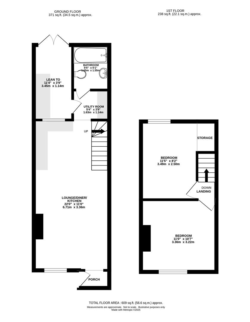 With a total floor area of approximately 609 square feet (56.6 sq. m), this property combines practical features with a warm and inviting feel. It is an ideal choice for first-time buyers, downsizers, or those seeking a well-located investment property.