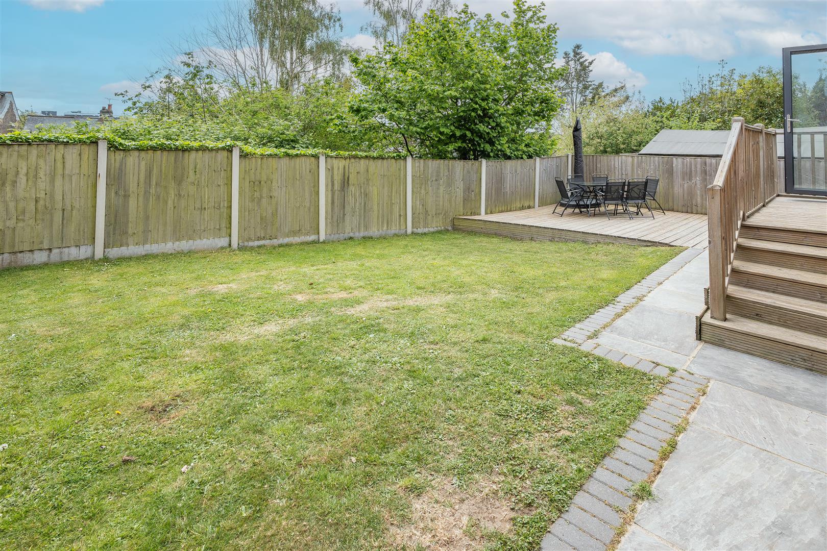 Externally, the rear garden is mainly laid to lawn with a decked seating area, creating an inviting outdoor retreat. A wide, paved side path leads to a substantial garage, while a carport to the front provides sheltered off-street parking and direct access to the garage via an up-and-over door.