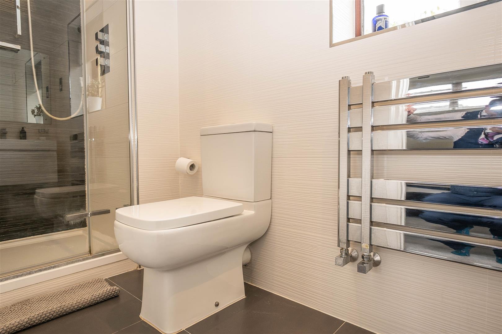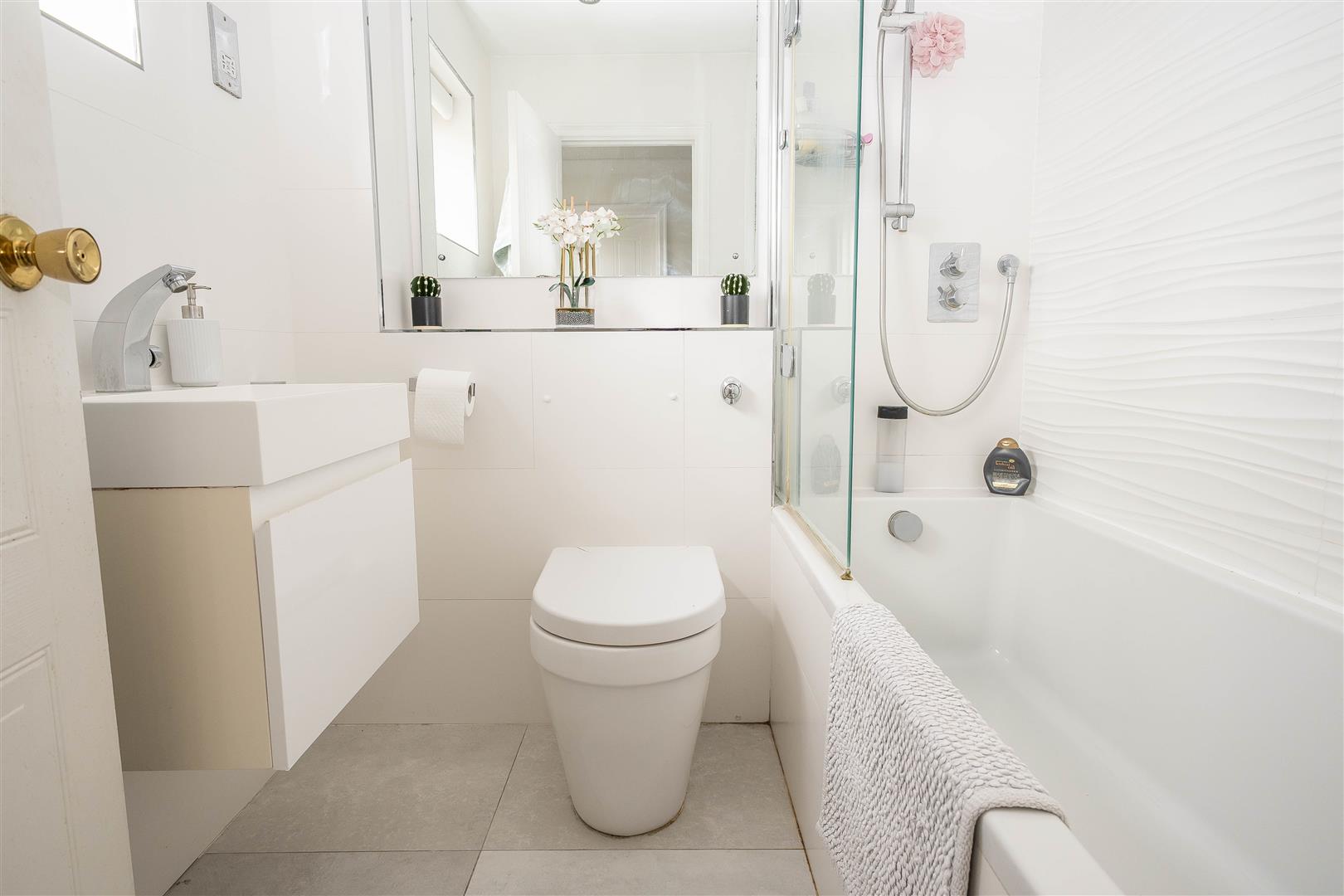 Upstairs, the first-floor landing gives access to three well-proportioned bedrooms. The principal bedroom enjoys the benefit of a stylish ensuite shower room, while the remaining two bedrooms are served by a sleek, modern family bathroom. Notably, the second bedroom is a generously sized dual-aspect room with windows to both the front and rear of the property, offering excellent natural light and potential to be reconfigured into two separate bedrooms.