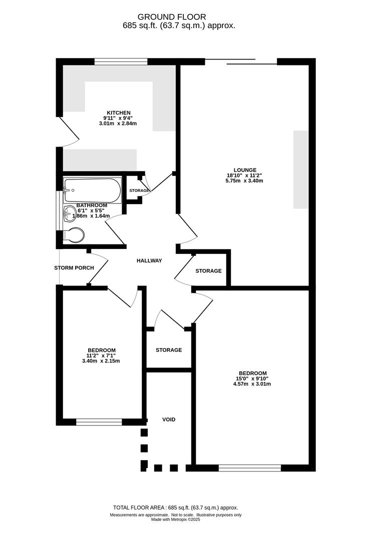 Accessed via its own private entrance, the property opens into a welcoming hallway with generous built-in storage. To the front, there are two well-proportioned double bedrooms, while to the rear you'll find a bright and airy kitchen fitted with a range of eye and base-level units, featuring a window overlooking the garden and a side door providing external access. The spacious lounge offers an inviting space to relax and unwind, with sliding patio doors opening directly onto your own private rear garden - perfect for outdoor dining or entertaining. A family bathroom completes the accommodation.