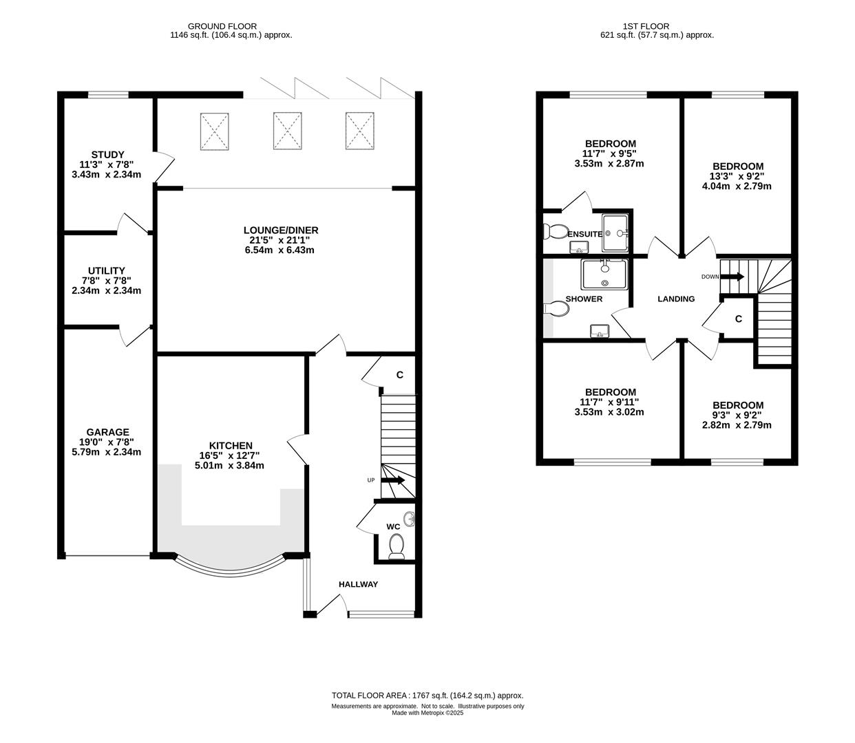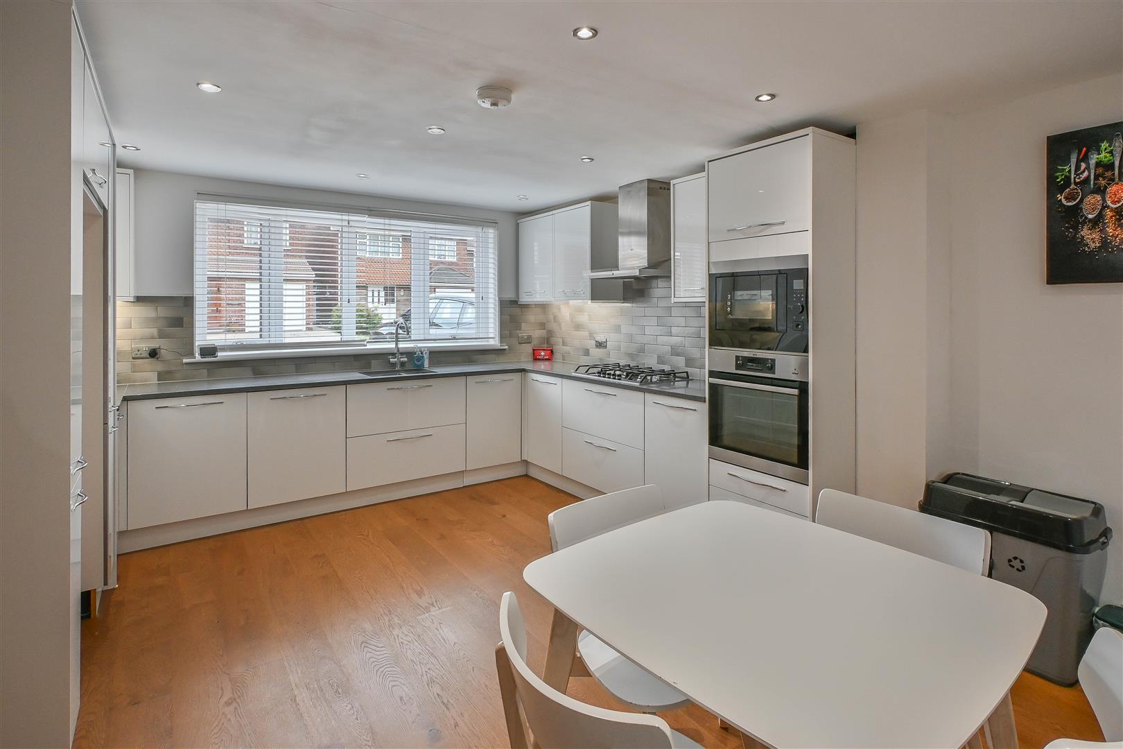 Upstairs, the landing gives access to four well-proportioned bedrooms, including a principal bedroom with an ensuite shower room. A contemporary family shower room serves the remaining bedrooms.