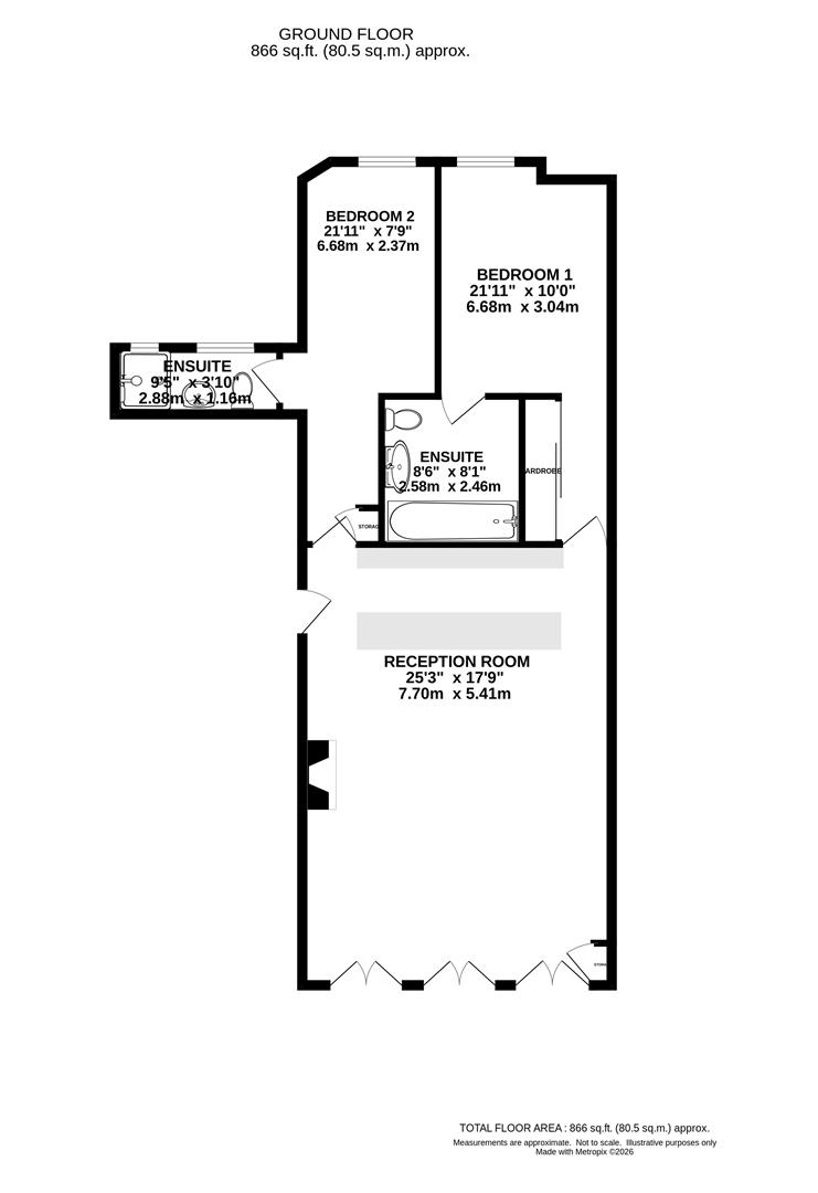 The principal bedroom benefits from built-in wardrobes and a contemporary ensuite bathroom, while the second bedroom also enjoys the convenience of a stylish ensuite shower room.
