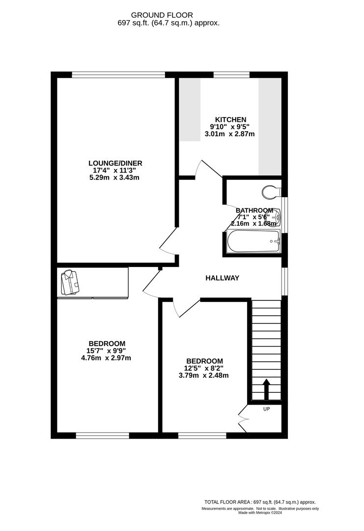 Accessed via a private front door, stairs lead up to the main living area, where you'll find two well-proportioned double bedrooms, a stylish contemporary bathroom, and a modern kitchen. The highlight of the home is the impressive 17'4" x 11'3" lounge/diner, providing a bright and spacious setting for relaxation and entertaining.