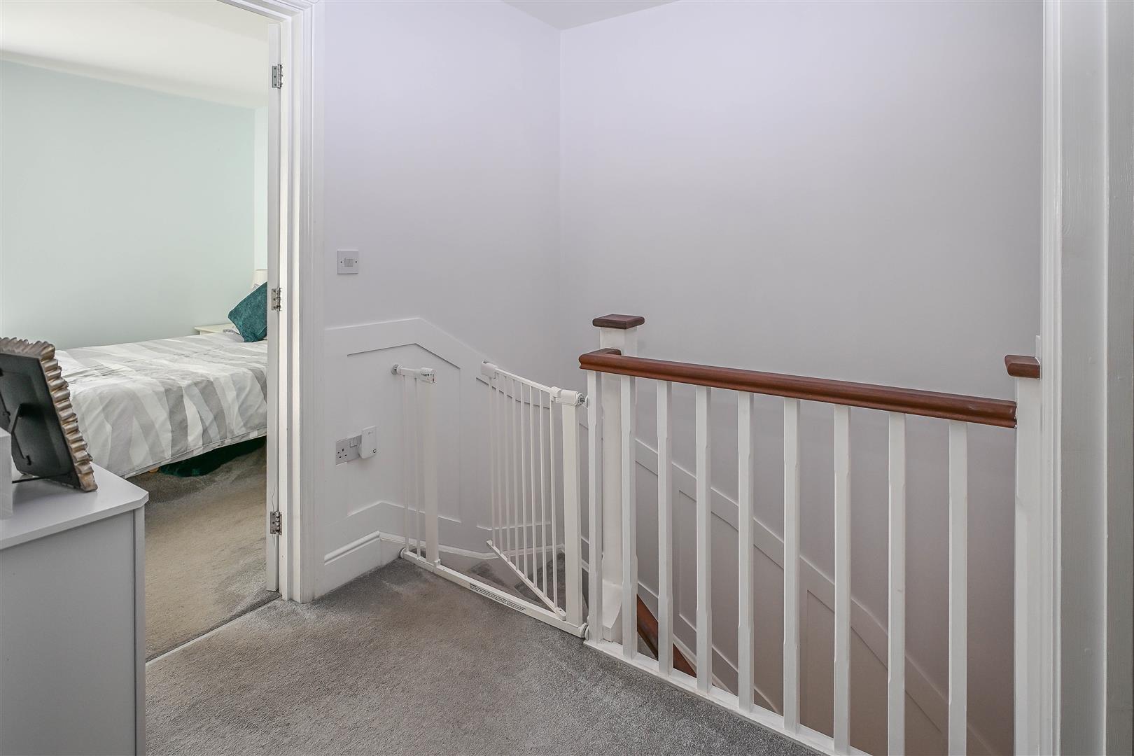 The internal layout begins with a welcoming entrance hall that flows through to the rear of the home, where a bright and comfortable lounge enjoys an abundance of natural light via French doors that open onto the rear garden. At the front of the property, the spacious kitchen/diner is fitted with contemporary eye and base level units, contrasting worktops, and a range of integrated appliances. The dining area is enhanced by a charming bay window, offering views to the front. A convenient ground-floor WC completes this level.