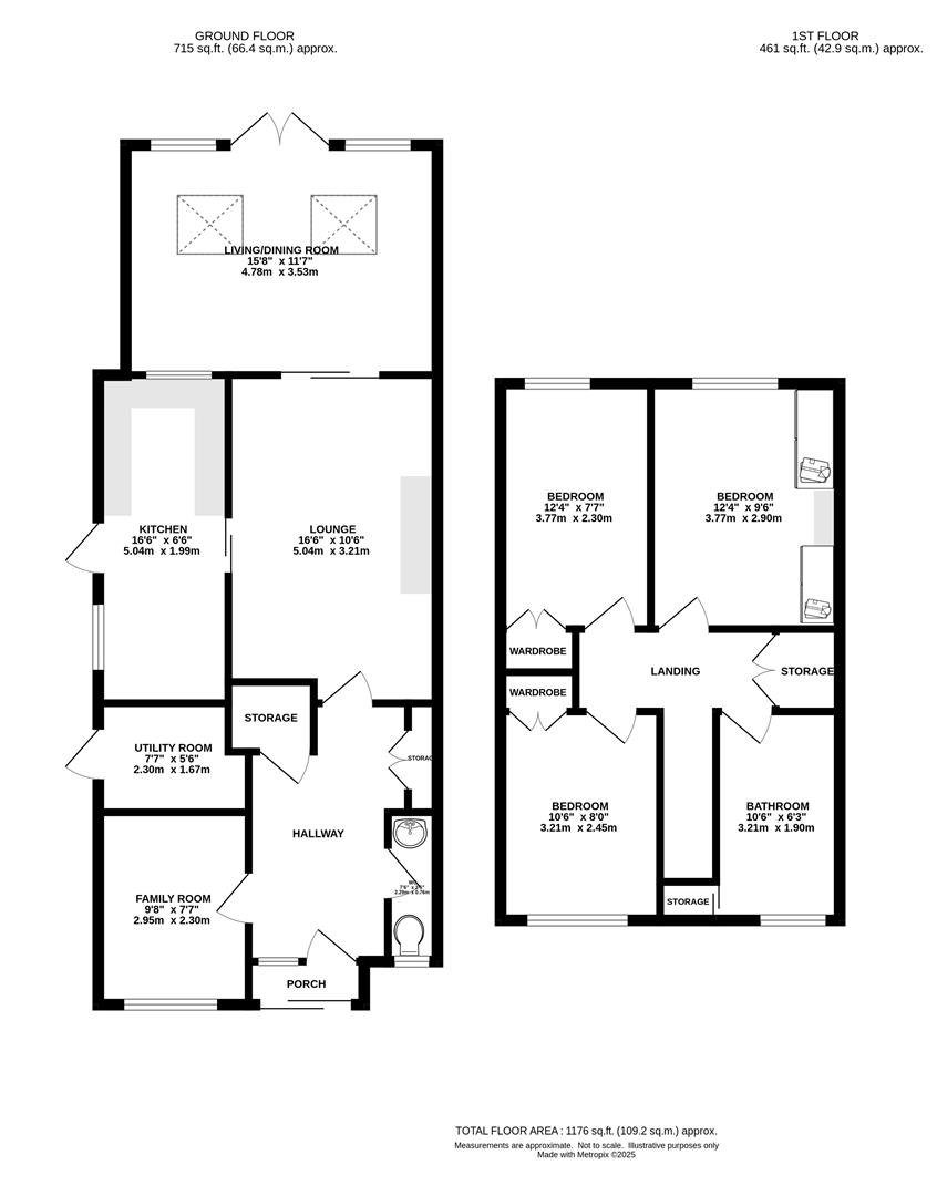 Upstairs, the home continues to impress with three double bedrooms, all benefitting from built-in wardrobes. The spacious family bathroom is fitted with both a bathtub and a walk-in shower, while the landing also offers further built-in storage.