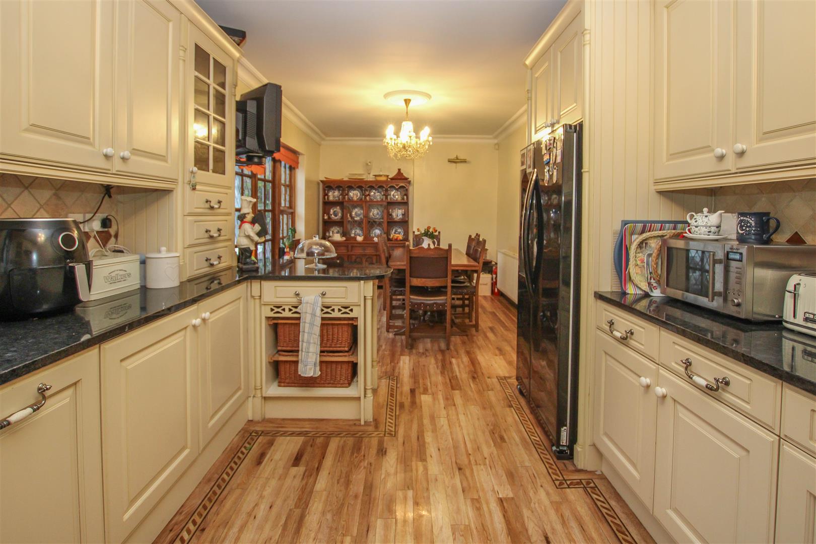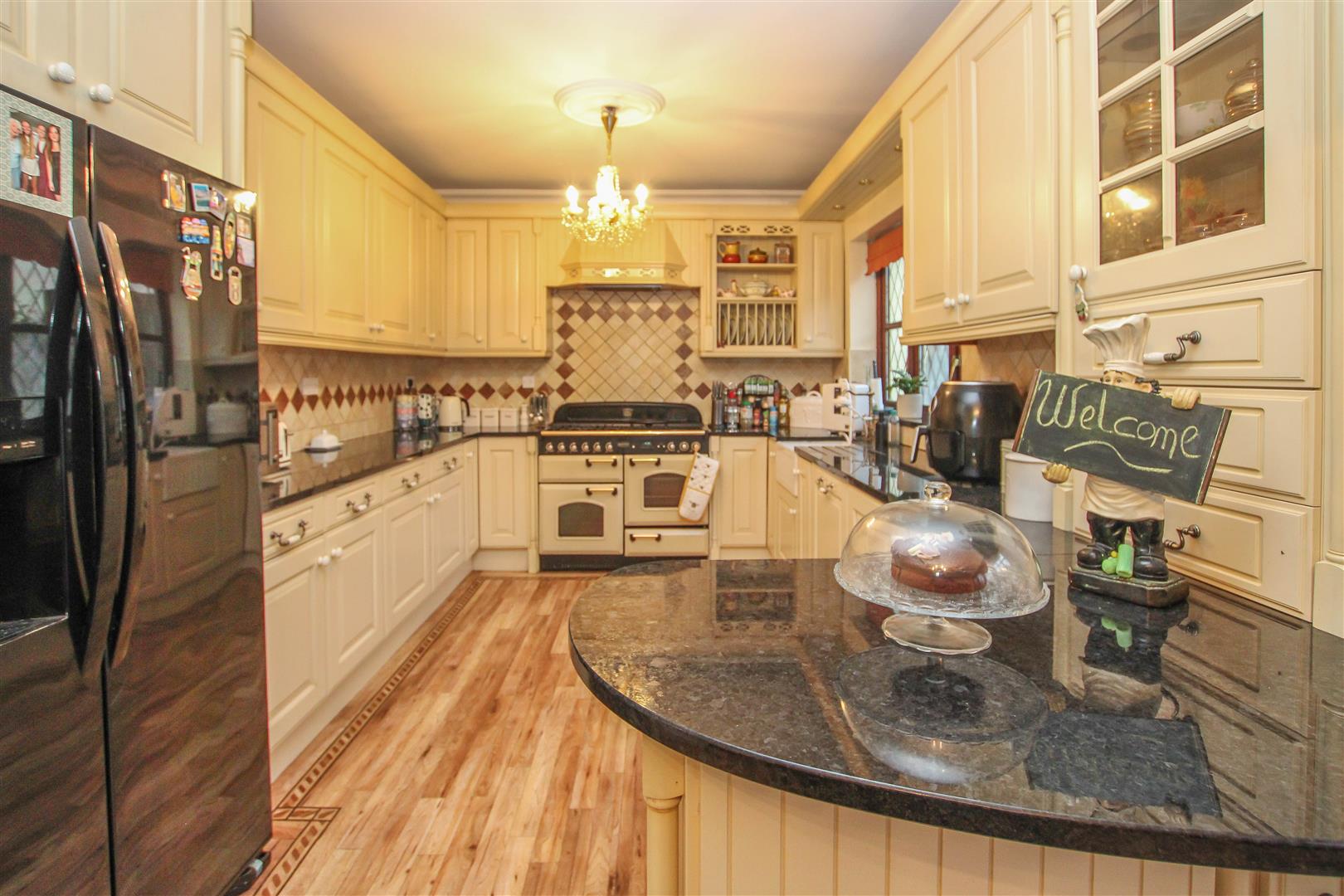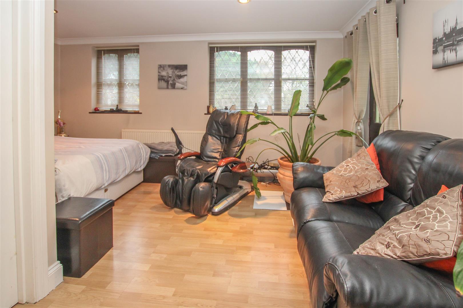 As you step inside, the hallway opens into an inviting reception hall featuring a striking fireplace. Double doors lead into a spacious, cosy lounge, creating a warm and welcoming ambiance. Toward the back of the lounge, you'll find an additional reception room which is currently being used as a fifth bedroom, this connects to a convenient ground-floor shower room and provides direct access to the rear garden. The thoughtfully designed kitchen is equipped with both wall and base units, generous counter space, a classic butler sink, and an elegant range cooker. The adjoining dining area is bathed in natural light, thanks to French doors and side windows that offer views of the expansive rear garden. Completing this level is a generously sized study.