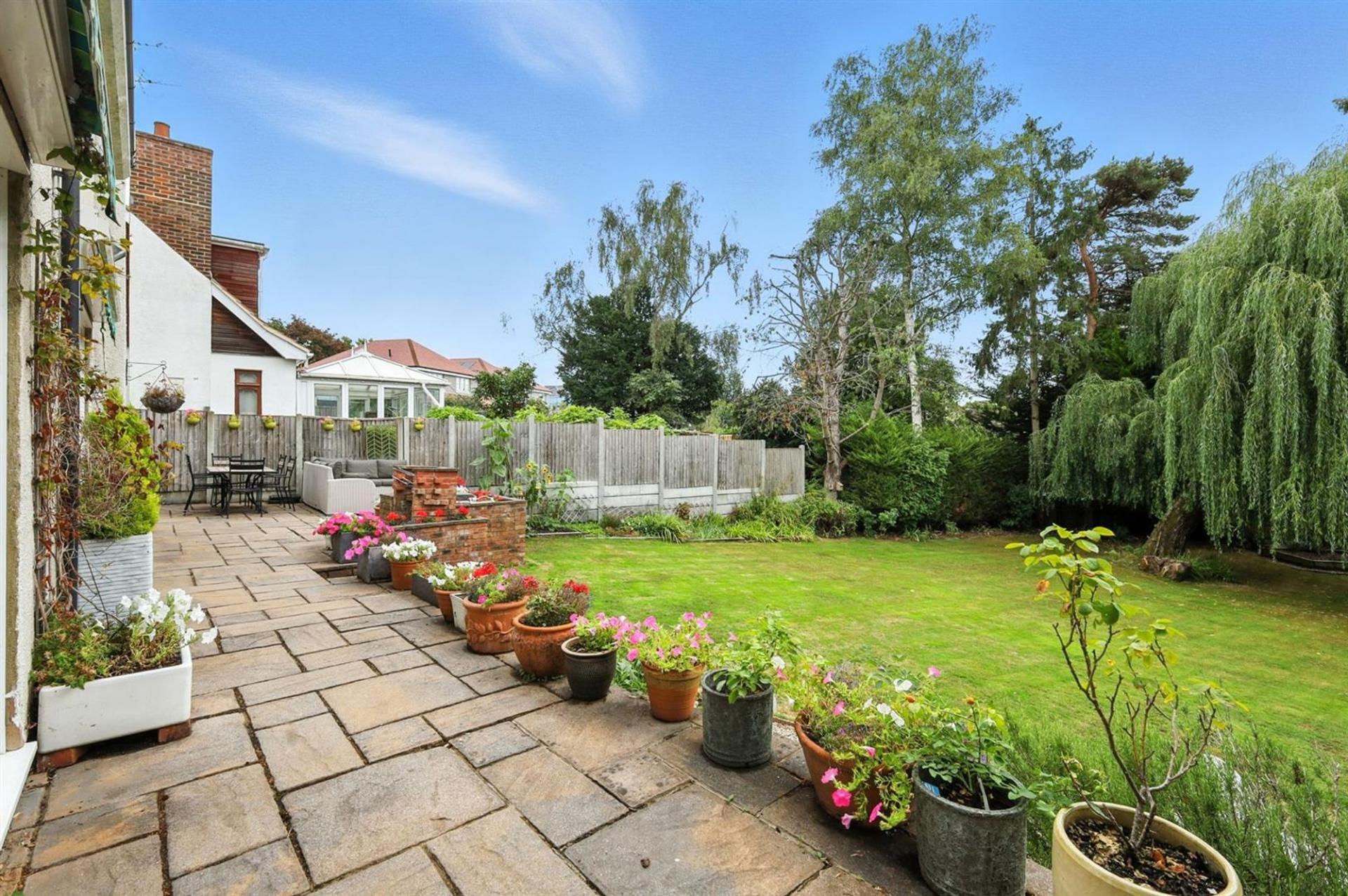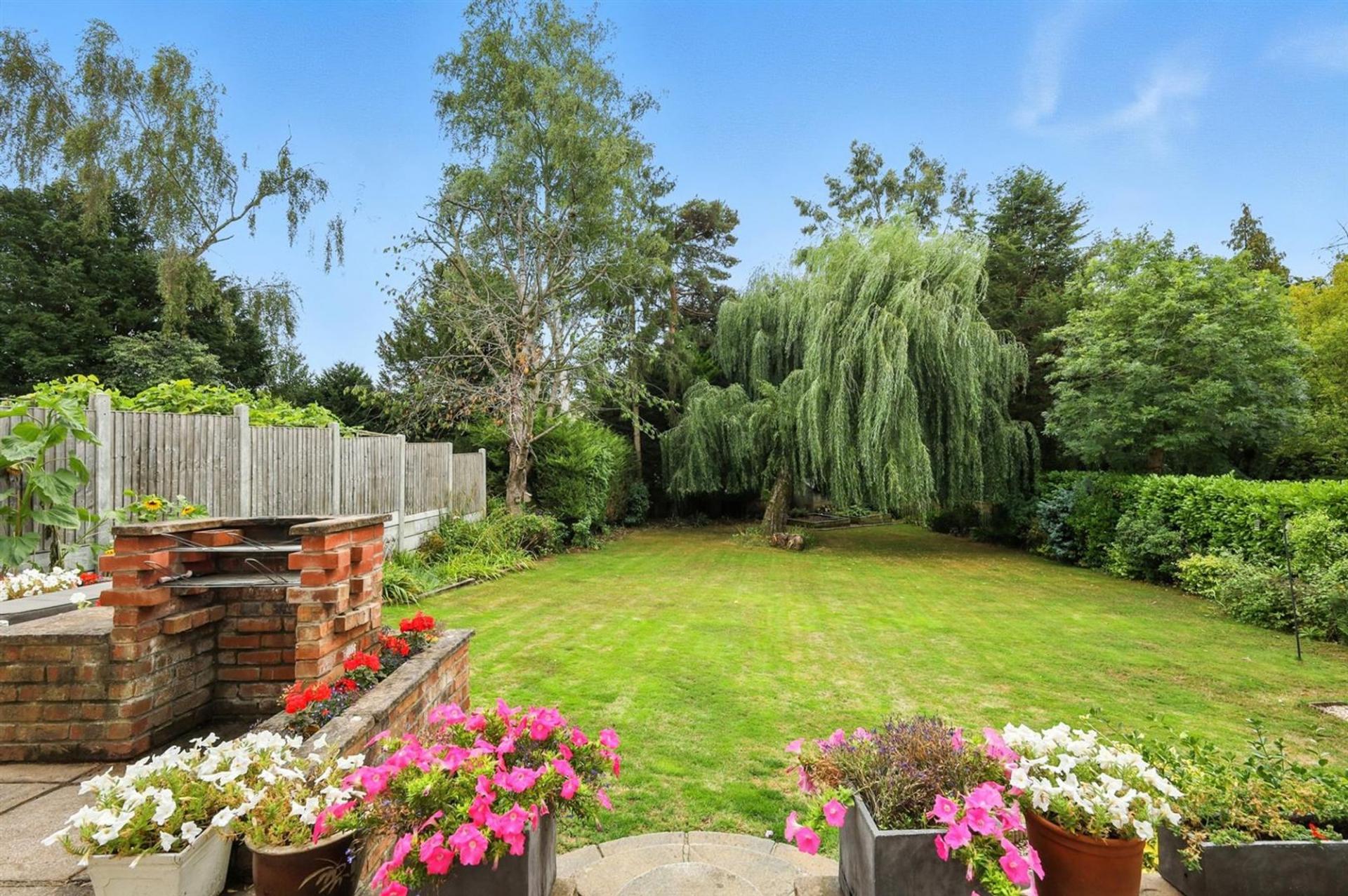 The outside space is a true highlight with a south facing garden. A broad patio stretches the width of the house, perfect for al fresco dining and summer gatherings, while the expansive lawn and mature trees create a sense of privacy and calm. To the front aspect a wide carriage driveway offers ample parking in addition to the double garage.