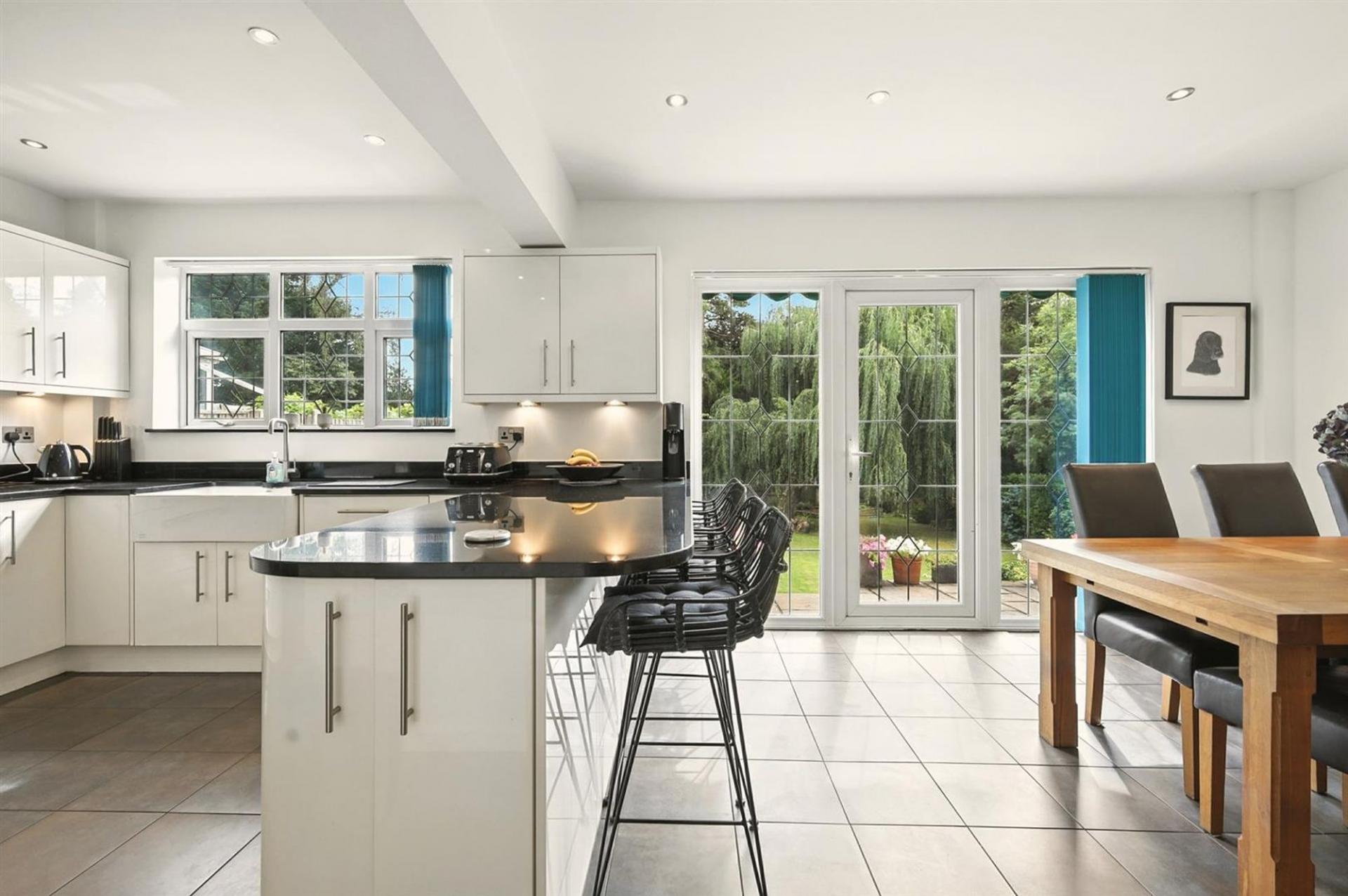 Upon entry you’ll find an impressive entrance hall that sets the tone for the property, leading through to light-filled rooms and a layout designed for both everyday life and entertaining. To the front, a bay-fronted sitting room provides the perfect spot for quiet evenings, while a separate reception room, leading from the kitchen/dining area, can adapt to suit a home office, snug, or playroom. The heart of the home is undoubtedly the expansive kitchen and dining area, with doors opening directly onto the patio and garden beyond. A large lounge also enjoys garden views, creating a natural flow between inside and out, especially in the summer months. A utility room, ground floor cloakroom and access to the double garage add to the home’s practicality.