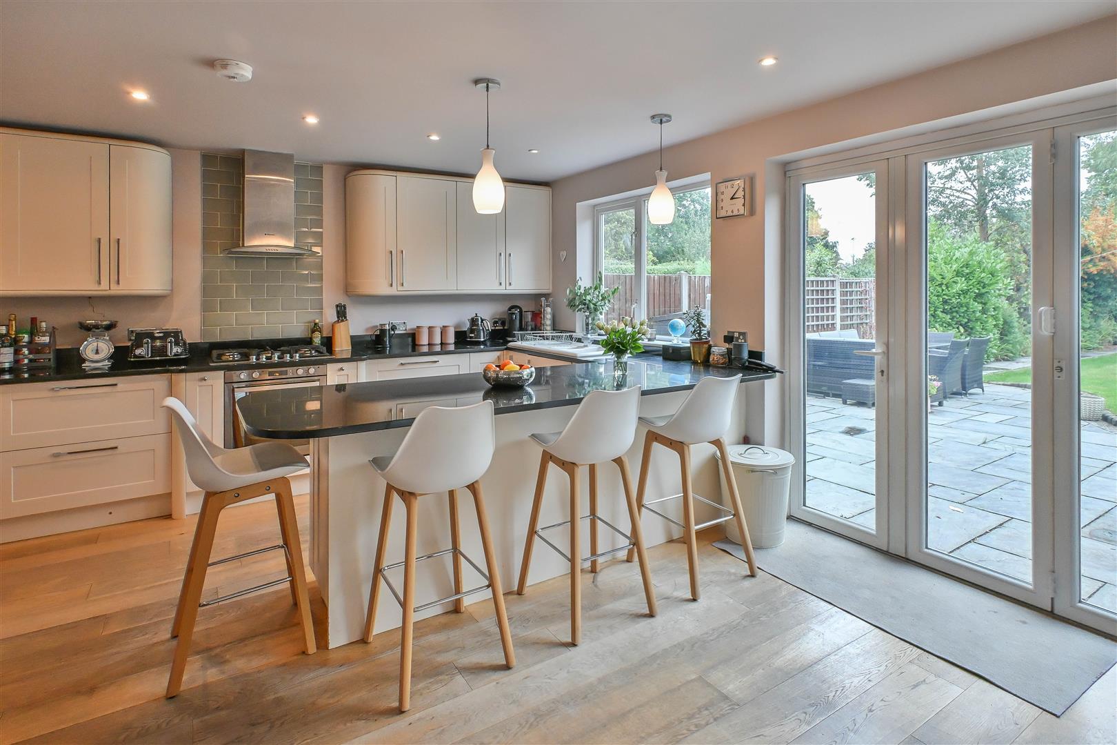 The accommodation is introduced by a welcoming entrance hall. To the front, a comfortable lounge offers a cosy retreat, with double doors opening into a versatile study. At the rear, the heart of the home lies in the bright and spacious kitchen/diner, beautifully fitted with contemporary eye and base level units, contrasting worktops, and a stylish breakfast bar. Bi-fold doors not only flood the room with natural light but also provide seamless access to the rear garden. A convenient ground floor cloakroom completes this level.