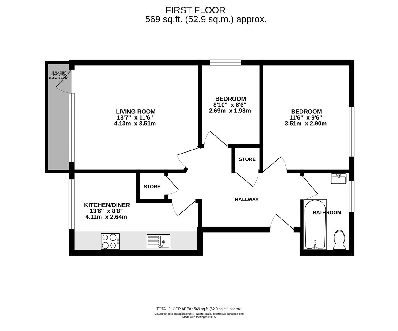 Balcony - 3.51m x 0.81m (11'6 x 2'8) -