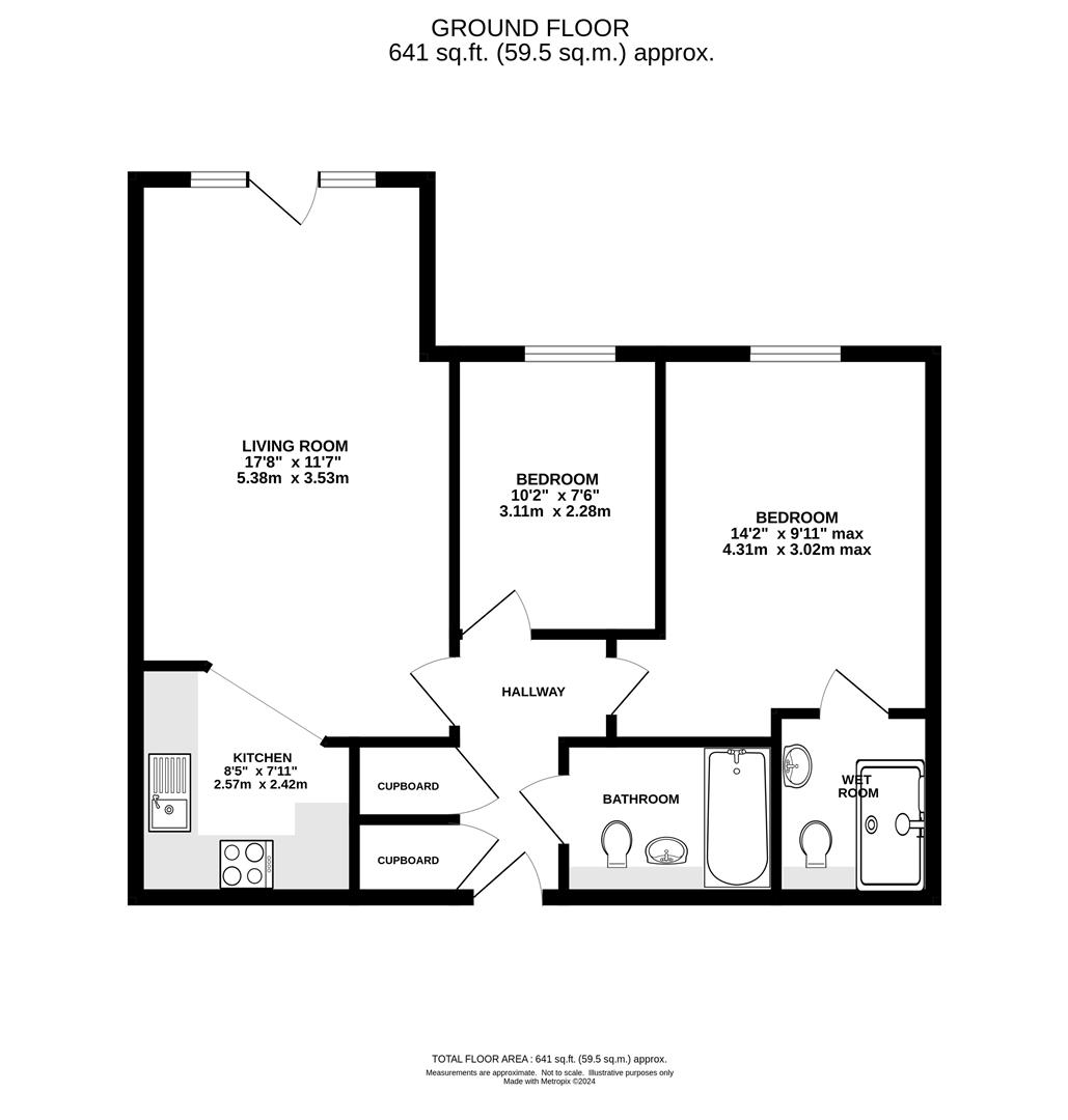 Internally, a good size entrance hall provides useful storage space and gives access to the spacious lounge and modern kitchen. The master bedroom is of good size and benefits from an ensuite wet room. A second bedroom and main bathroom complete this apartment.