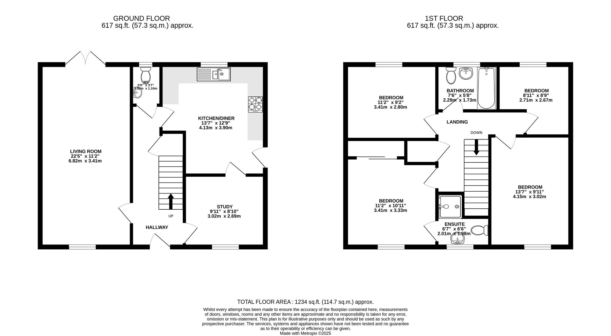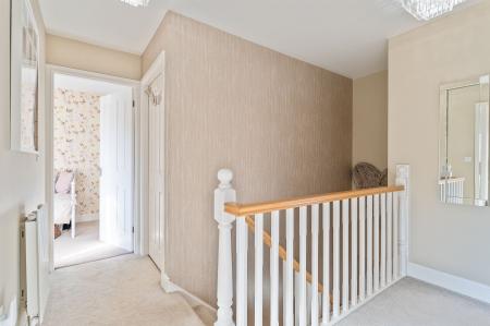 On the first floor are four well-proportioned bedrooms, all capable of accommodating a double bed. The primary bedroom benefits from built-in wardrobes and a private en-suite shower room, while the remaining bedrooms are served by the family bathroom, which is finished to a modern standard.