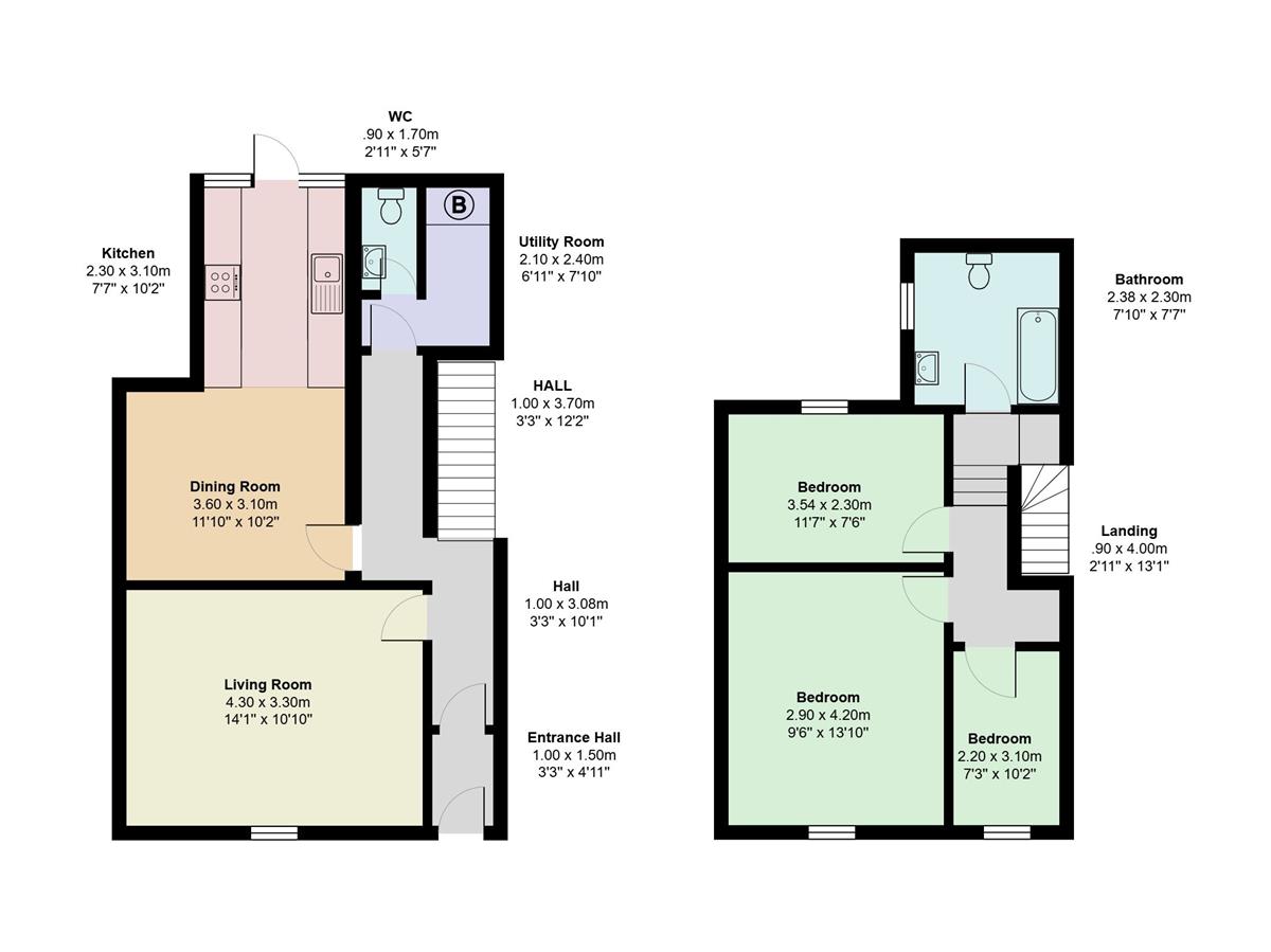 Bedroom 1 w: 2.87m x l: 4.25m x h: 2.42m (w: 9' 5" x l: 13' 11" x h: 7' 11")