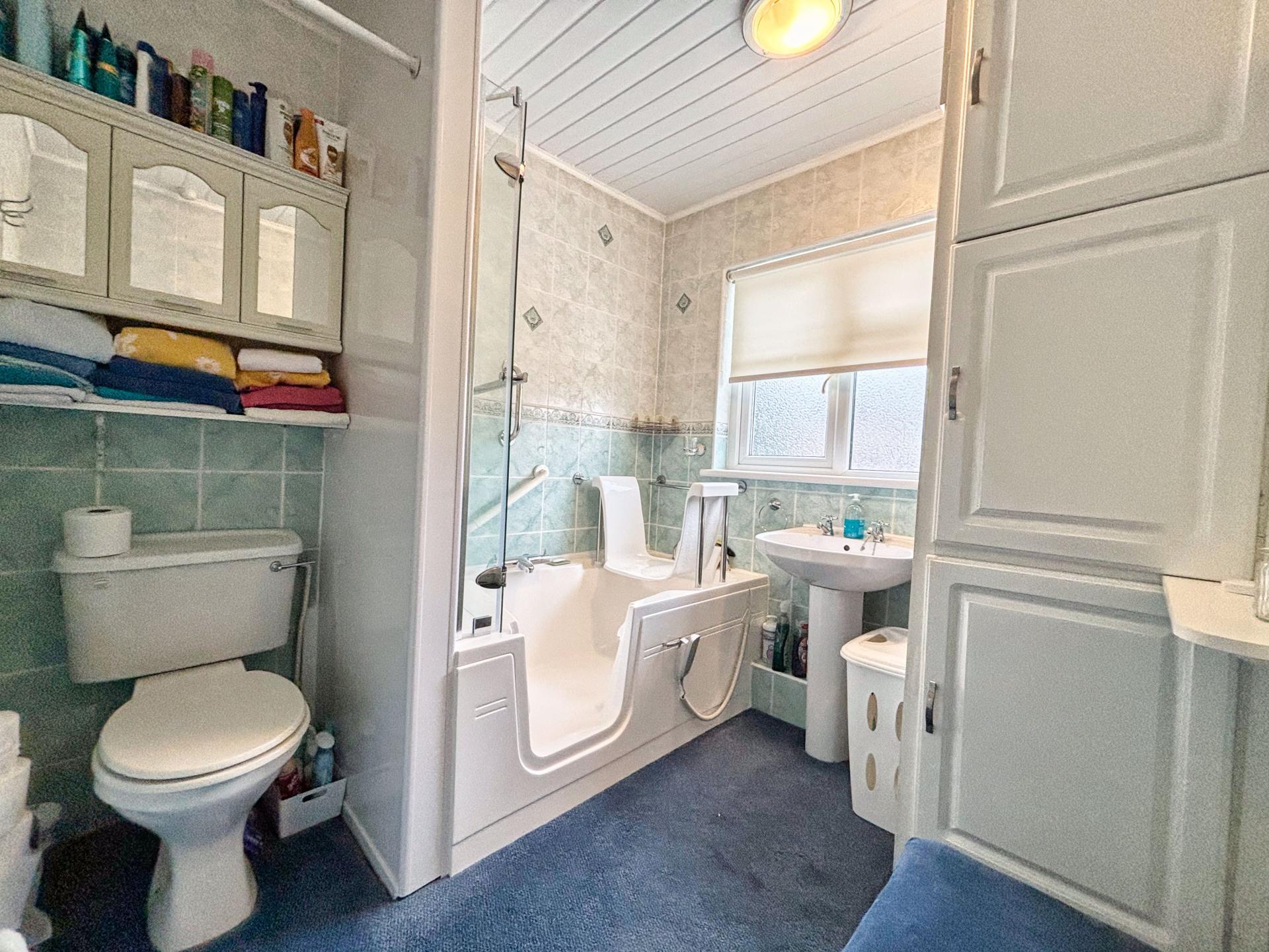 To the first floor landing there is an obscure double glazed window to the side, loft inspection point and doorways leading to all three bedrooms and family bathroom. The main bedroom is an impressive size double room laid to carpet, benefits from multiple wardrobes and storage units with a double glazed bay window to the front. Bedroom two is another generous size double room that also benefits from built-in wardrobes and a double glazed window to the rear overlooking the garden. Bedroom three is a well-proportioned size room currently used as an office with multiple purpose, useful built-in storage cupboard and a double glazed window to the front. The family bathroom has been fitted with a three-piece suite comprising; a low-level WC, pedestal wash handbasin and walk-in bath with showerhead above. There are fully tiled walls to the wet areas, storage cupboard housing the combination style boiler and an obscure double glazed window to the rear.