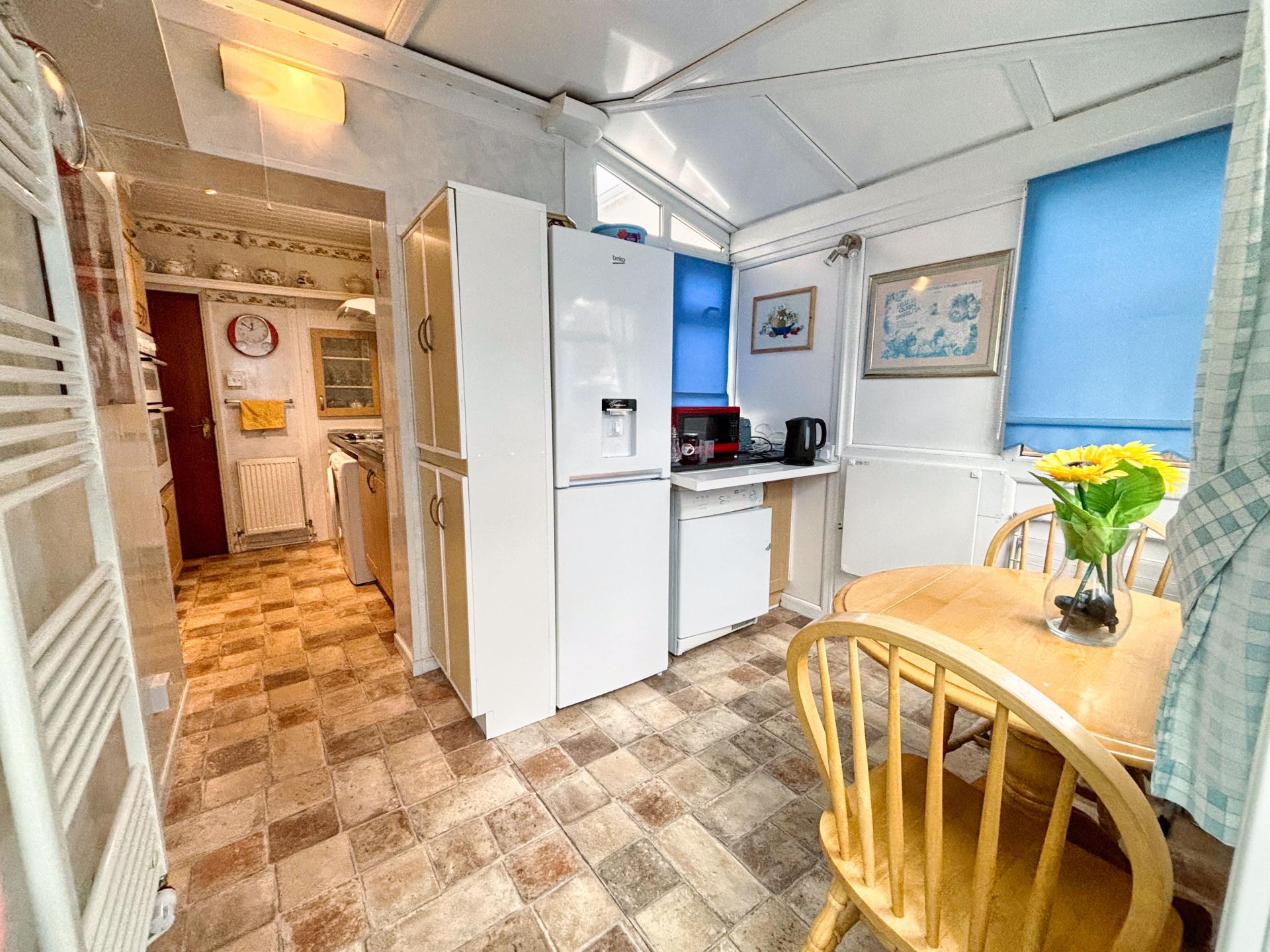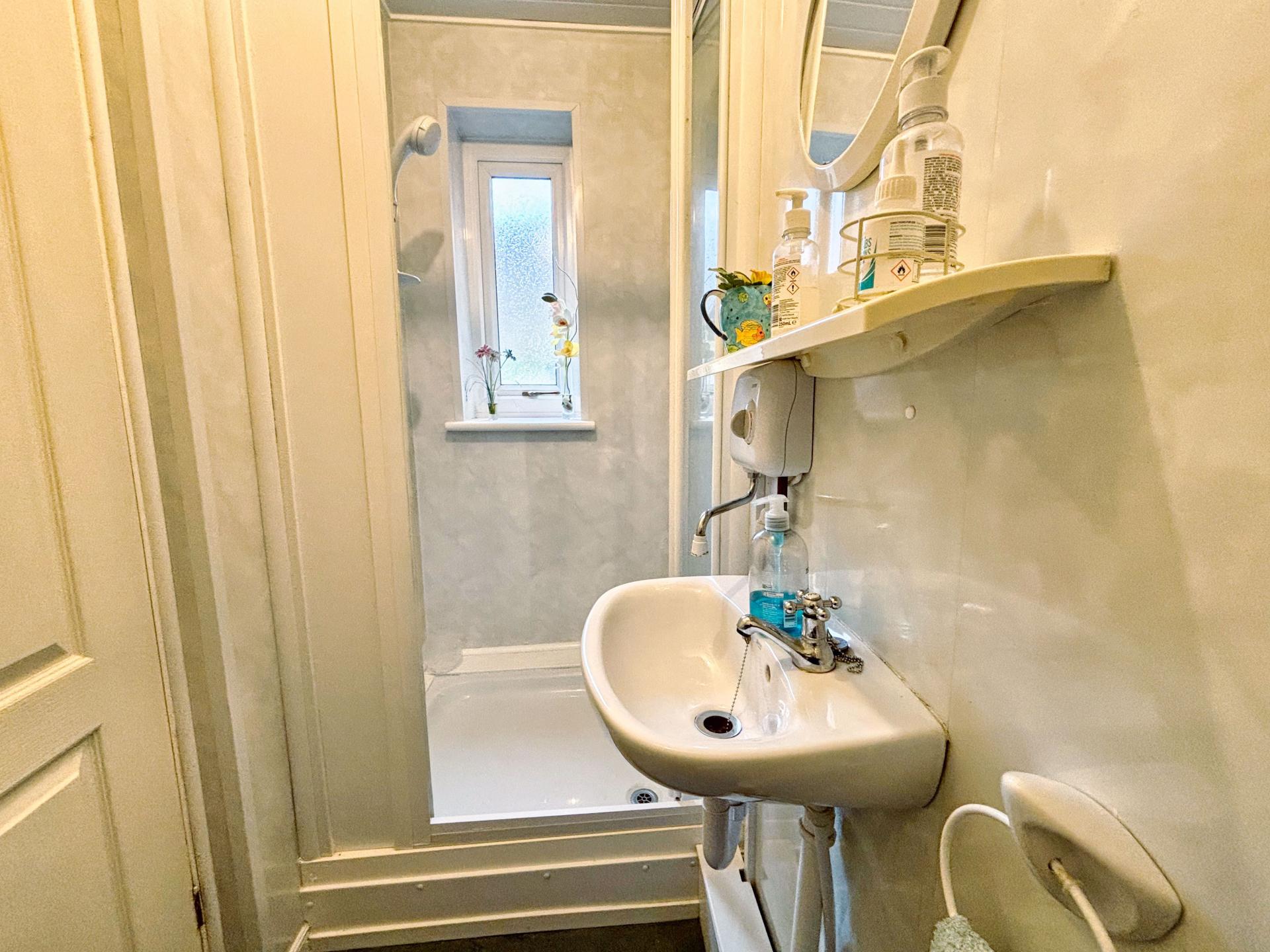 The dining room is a generous size room laid to carpet with featured fireplace, picture rail and an archway through to the conservatory. The conservatory is made up of UPVC construction with French doors leading out to the garden and a doorway through to the shower room. The shower room has been fitted with a three-piece suite comprising; a low-level WC, wash handbasin and electric shower suite.