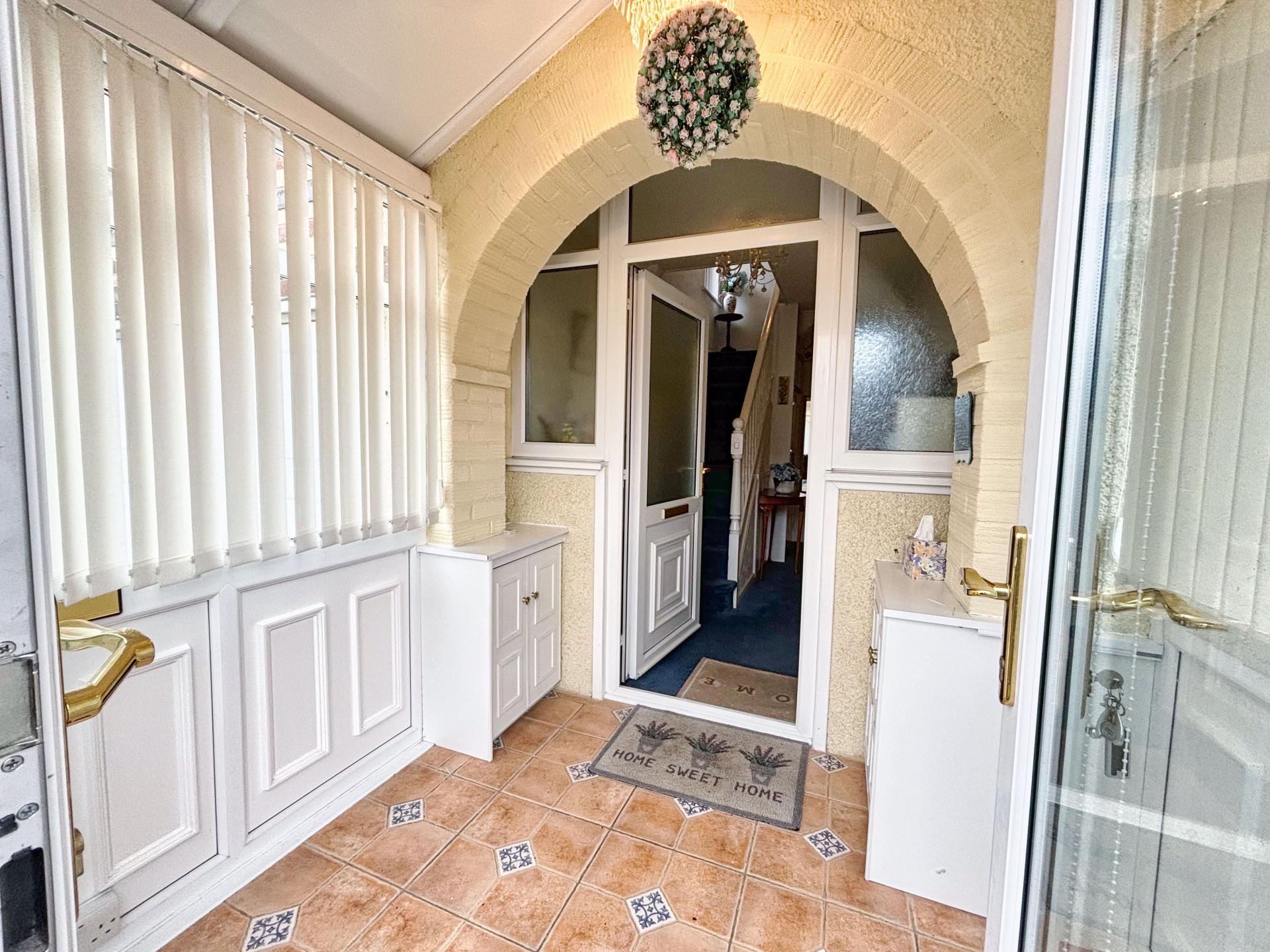 The property is entered via a UPVC French door into an entrance porch laid to tiled flooring with obscure glazed flanked door into the entrance hallway with staircase rising to the first floor landing with useful storage cupboard beneath and doorways leading to the lounge, dining room and kitchen. The lounge room is laid to carpet with feature fireplace and a large double glazed UPVC bay window to the front allowing natural light to pour into the space.