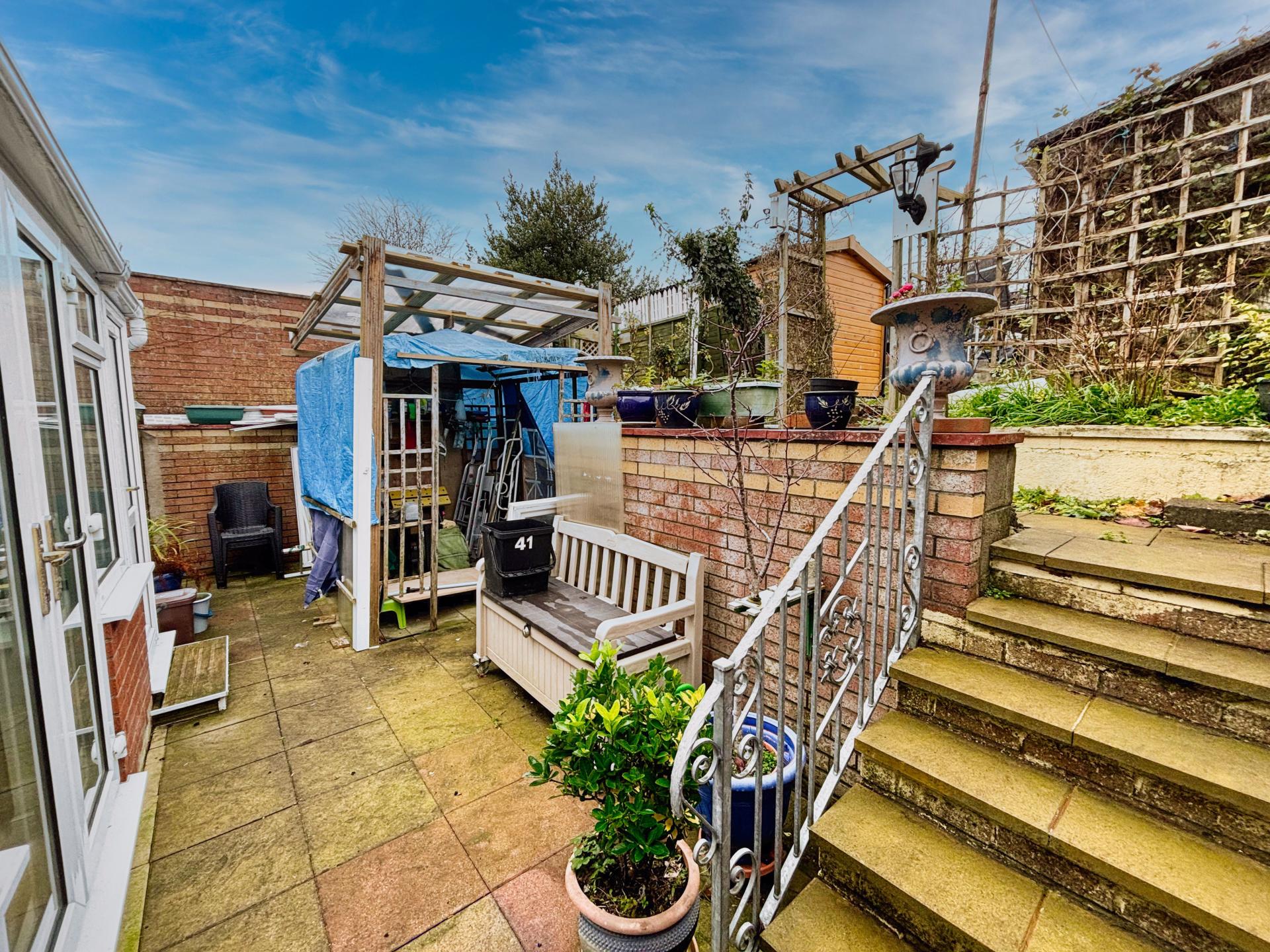 To the front of the property is a gated resin driveway ahead of the garage and ample front garden with plants and shrubs. To the rear of the property is a fully enclosed garden laid mostly to patio with steps leading to an extended part of the garden currently being used for additional storage, there is also external doors that give access to the garage.