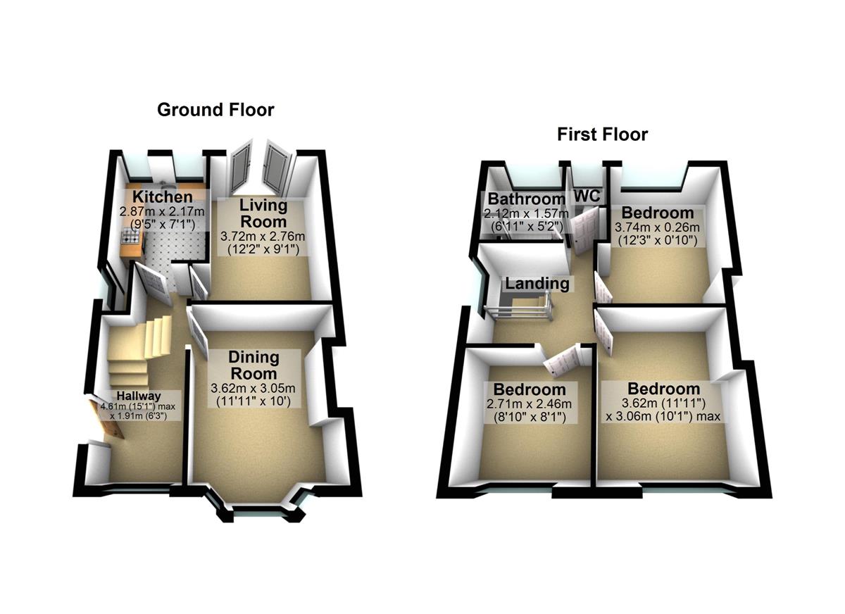 Bedroom 3 w: 2.47m x l: 2.75m x h: 2.66m (w: 8' 1" x l: 9' x h: 8' 9")