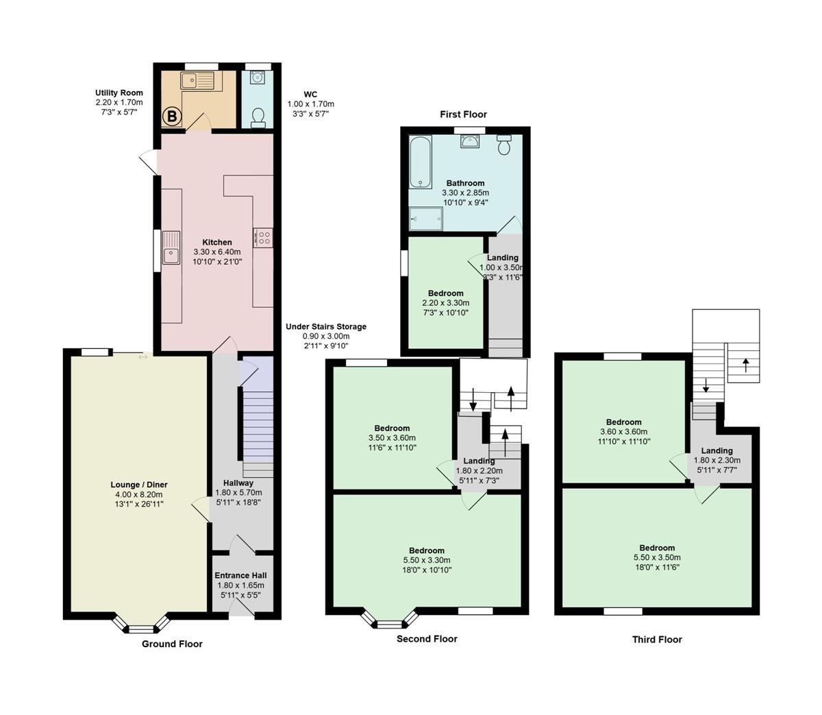 Bedroom 5 w: 5.5m x l: 3.5m x h: 2.3m (w: 18' 1" x l: 11' 6" x h: 7' 7")