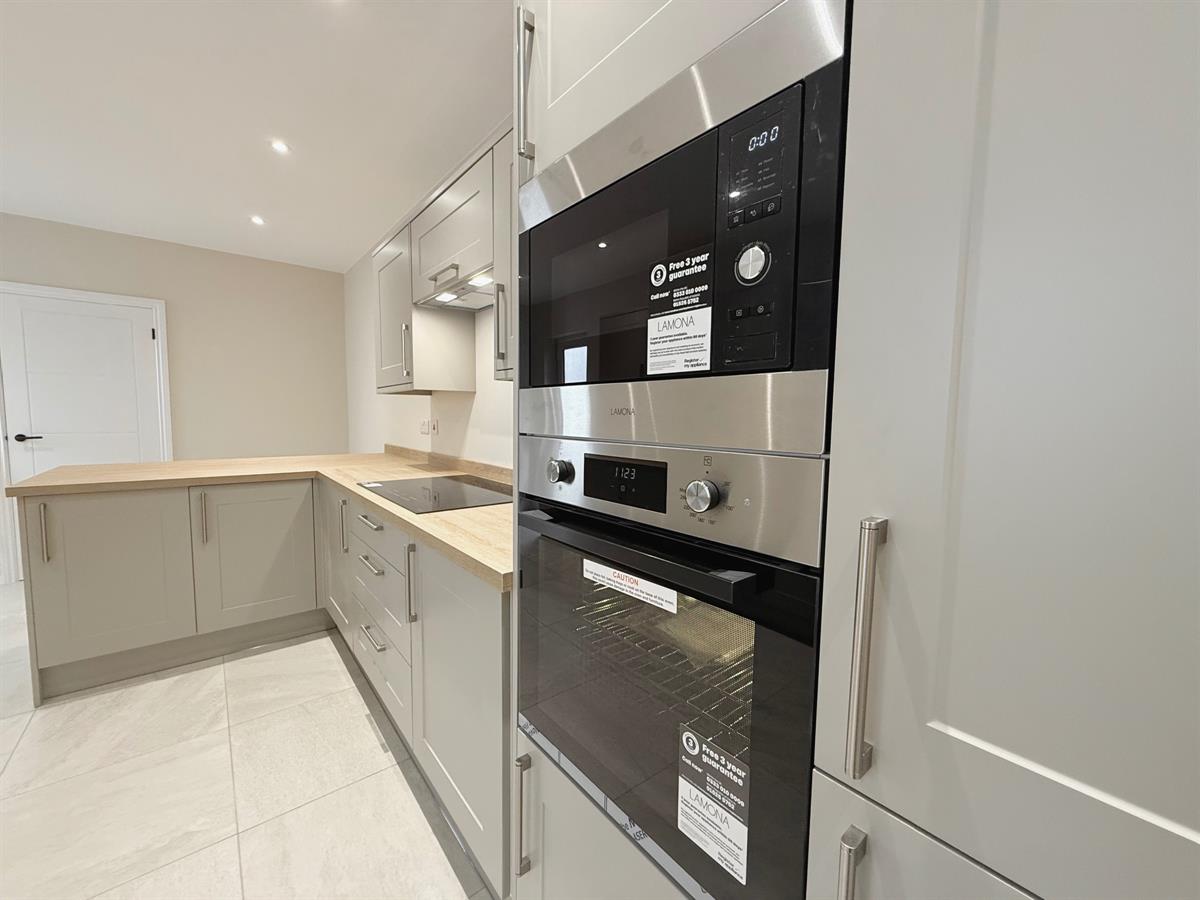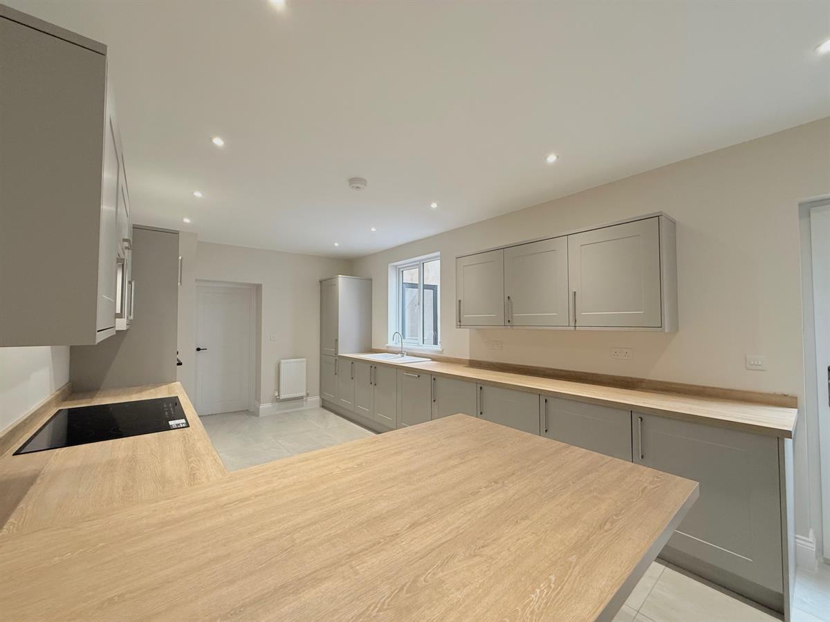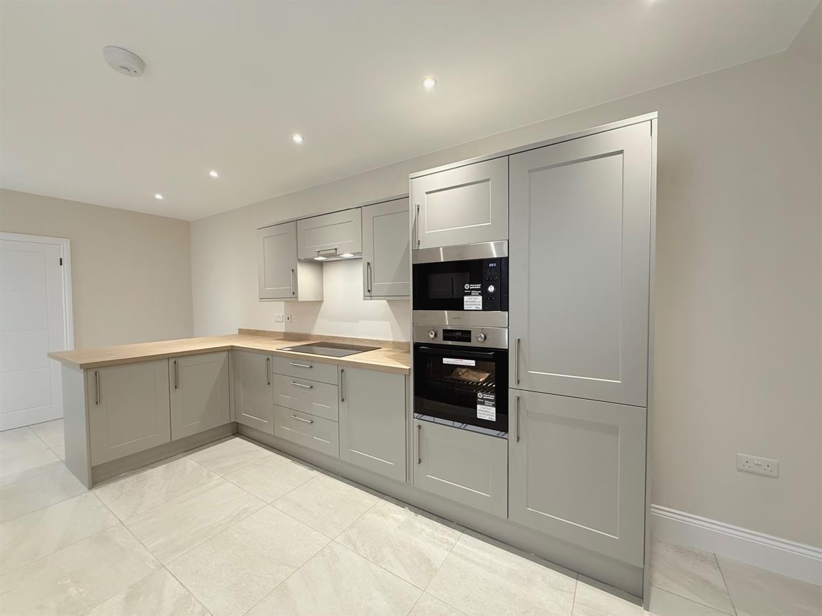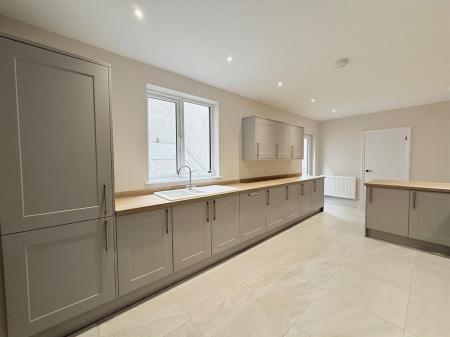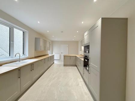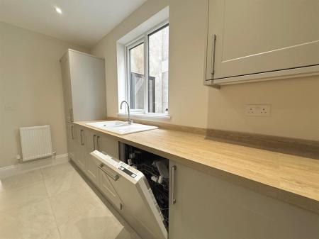 The high-specification kitchen offers a perfect balance of style and functionality, featuring sleek fitted units, an integrated oven, microwave, dishwasher, washing machine, and an electric hob - all accompanied by manufacturer warranties for peace of mind. A breakfast bar with seating space for stools provides a relaxed spot for dining or entertaining, while a spacious utility room adds valuable storage and practicality for everyday living.
