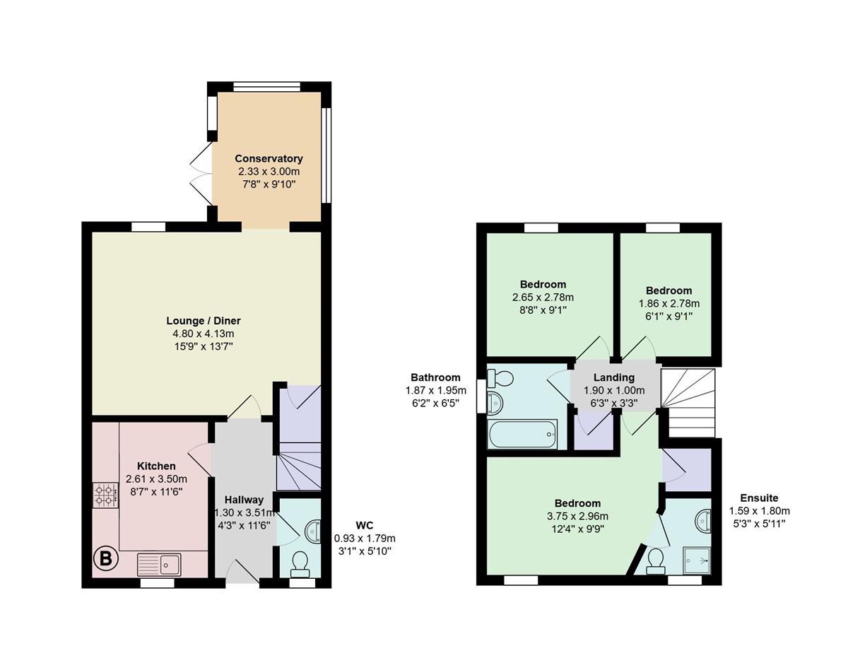 En-suite w: 1.8m x l: 1.59m x h: 2.3m (w: 5' 11" x l: 5' 3" x h: 7' 7")
