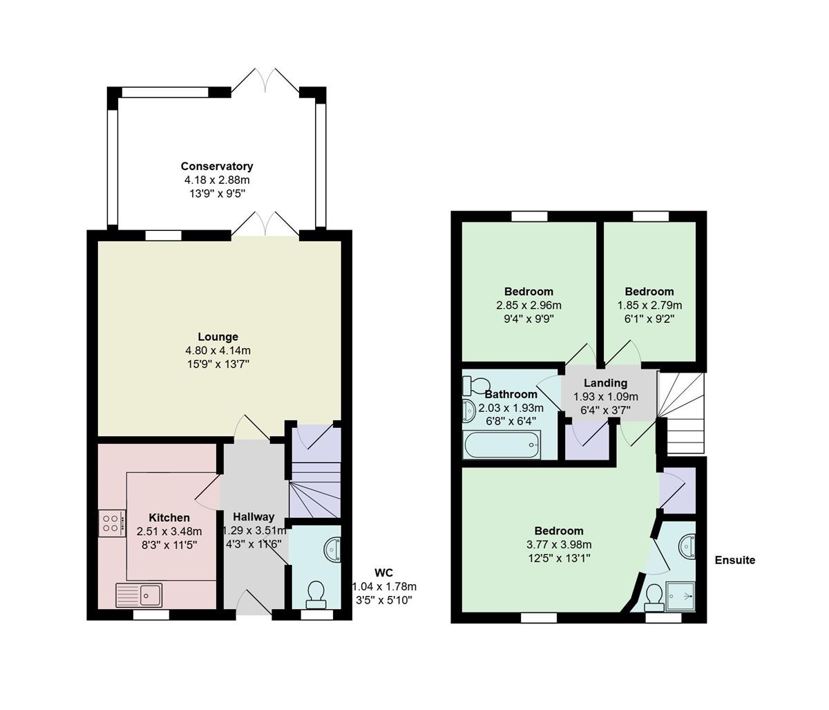 Conservatory w: 4.18m x l: 2.88m x h: 3.18m (w: 13' 9" x l: 9' 5" x h: 10' 5")