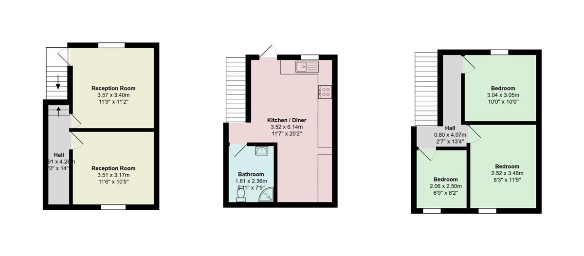 Kitchen/Diner w: 3.52m x l: 6.14m x h: 2.36m (w: 11' 7" x l: 20' 2" x h: 7' 9")