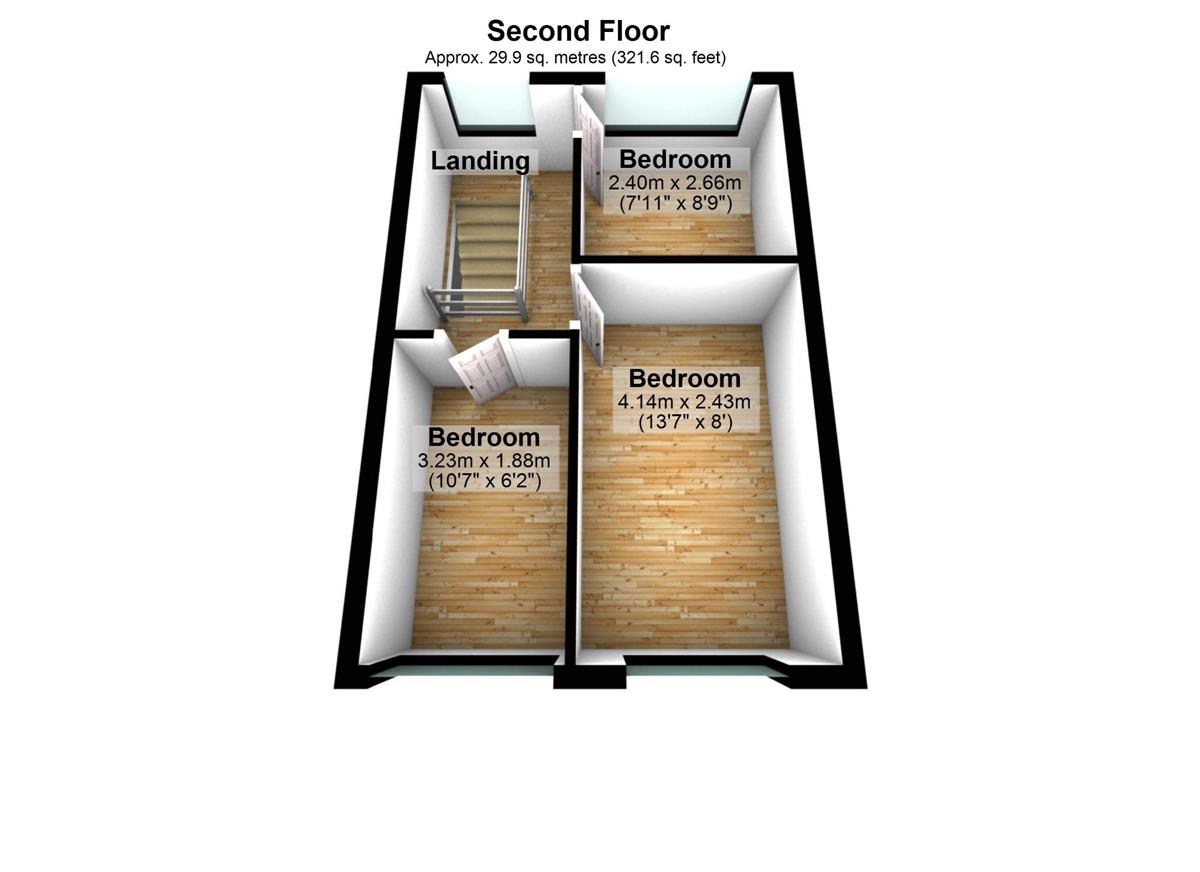 Bedroom 3 w: 1.89m x l: 3.23m x h: 2.42m (w: 6' 2" x l: 10' 7" x h: 7' 11")