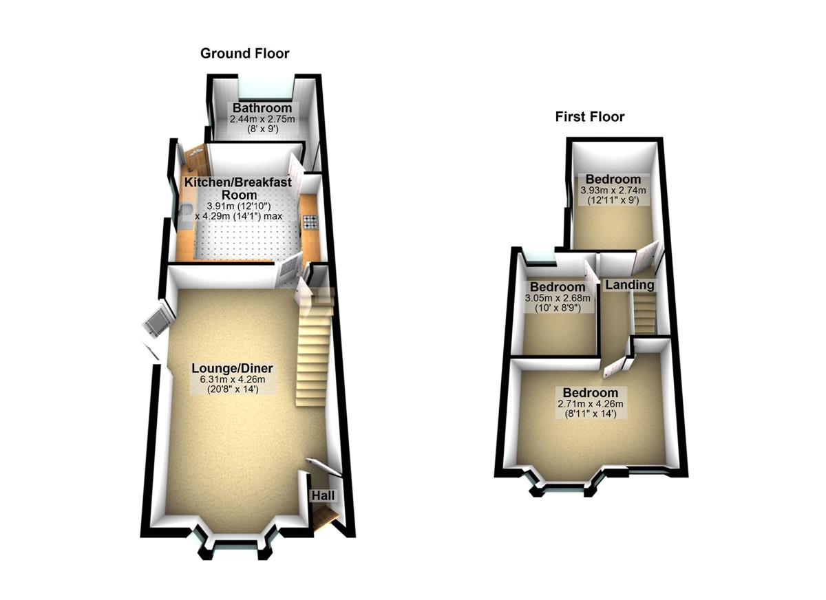 Kitchen w: 4.41m x l: 3.85m x h: 2.47m (w: 14' 5" x l: 12' 7" x h: 8' 1")
