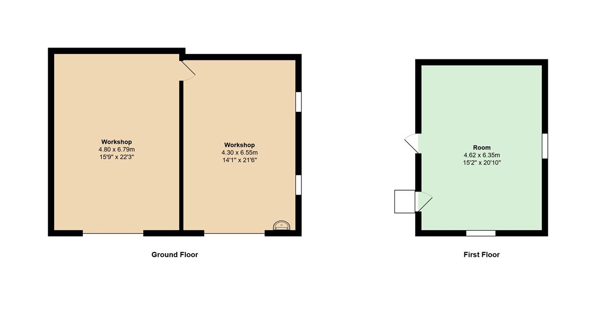 Workshop w: 4.8m x l: 6.79m x h: 2.34m (w: 15' 9" x l: 22' 3" x h: 7' 8")