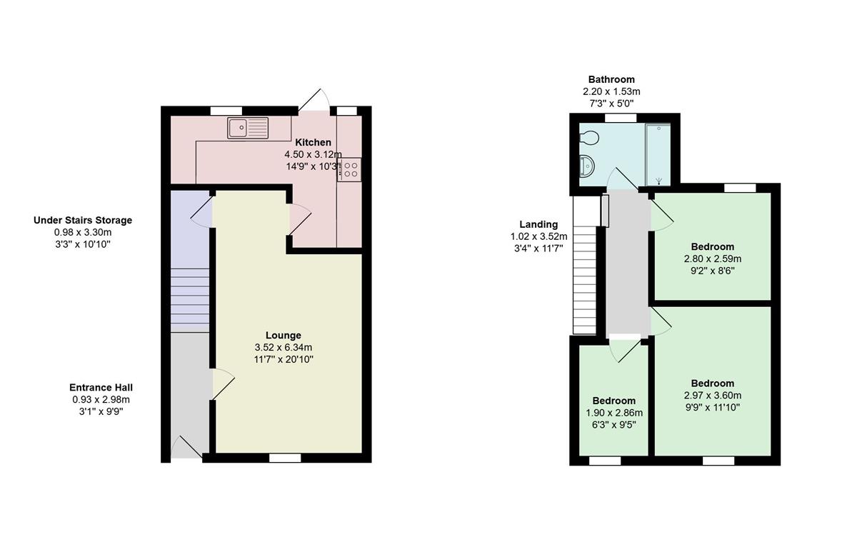Entrance hall w: 0.93m x l: 2.98m x h: 2.54m (w: 3' 1" x l: 9' 9" x h: 8' 4")