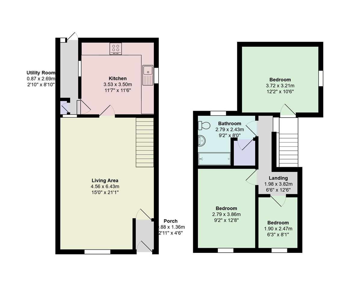 Bedroom 3 w: 1.87m x l: 2.92m x h: 2.58m (w: 6' 2" x l: 9' 7" x h: 8' 6")