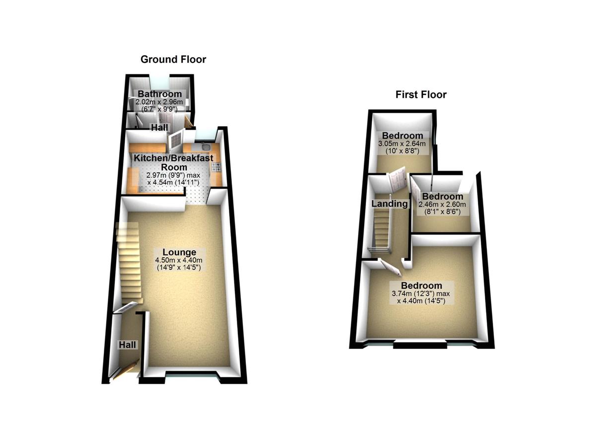 Bedroom 1 w: 4.44m x l: 3.69m (w: 14' 7" x l: 12' 1")