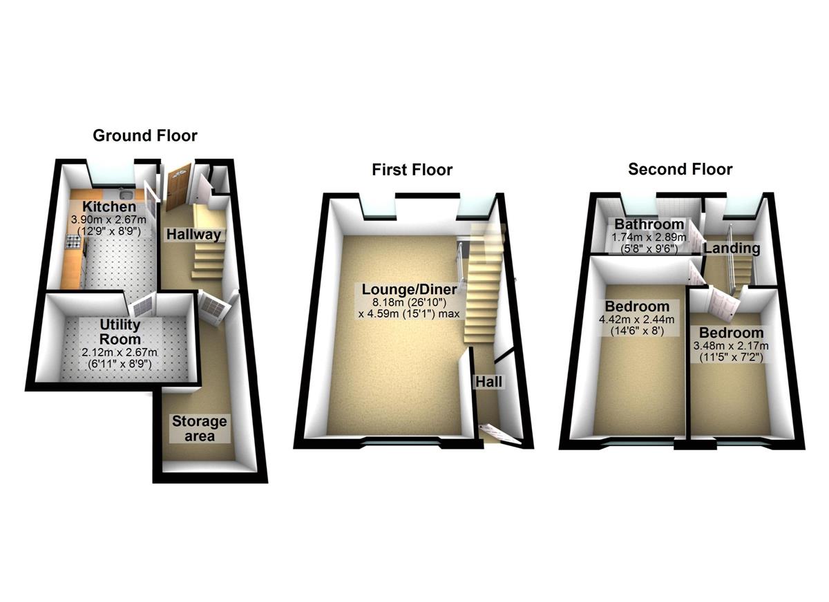 Dining Room w: 2.57m x l: 2.91m x h: 2.49m (w: 8' 5" x l: 9' 6" x h: 8' 2")