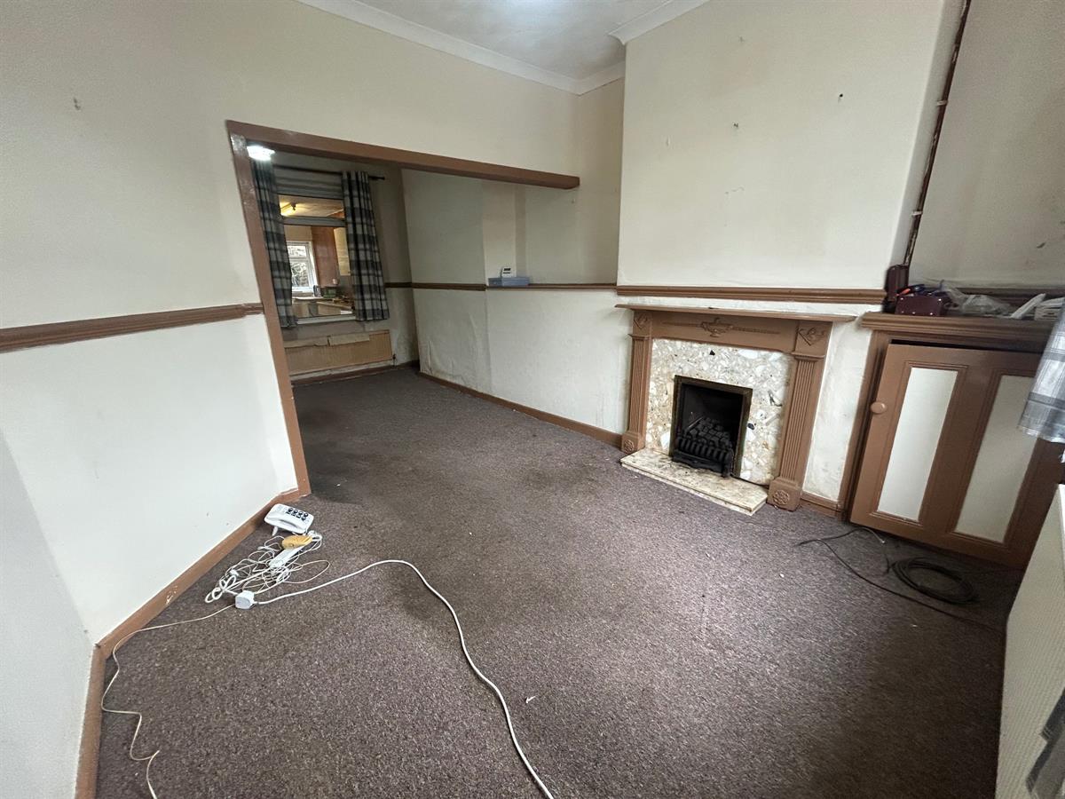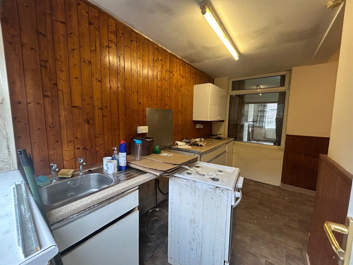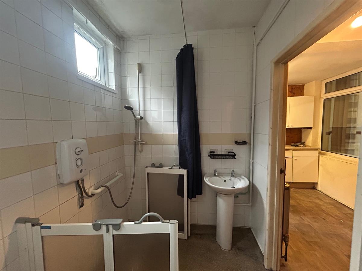 The ground floor comprises a large open living room and dining area, a kitchen and a walk-in wet room style shower room. Upstairs there are three bedrooms, offering flexible accommodation for a family home or rental investment once updated. While the layout is functional, the property would benefit from refurbishment and reconfiguration to maximise its full potential.