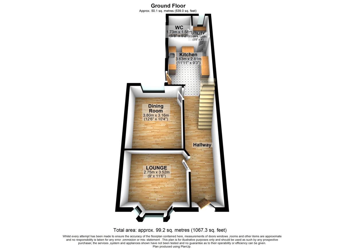 Entrance hall w: 1.2m x l: 3.54m (w: 3' 11" x l: 11' 7")