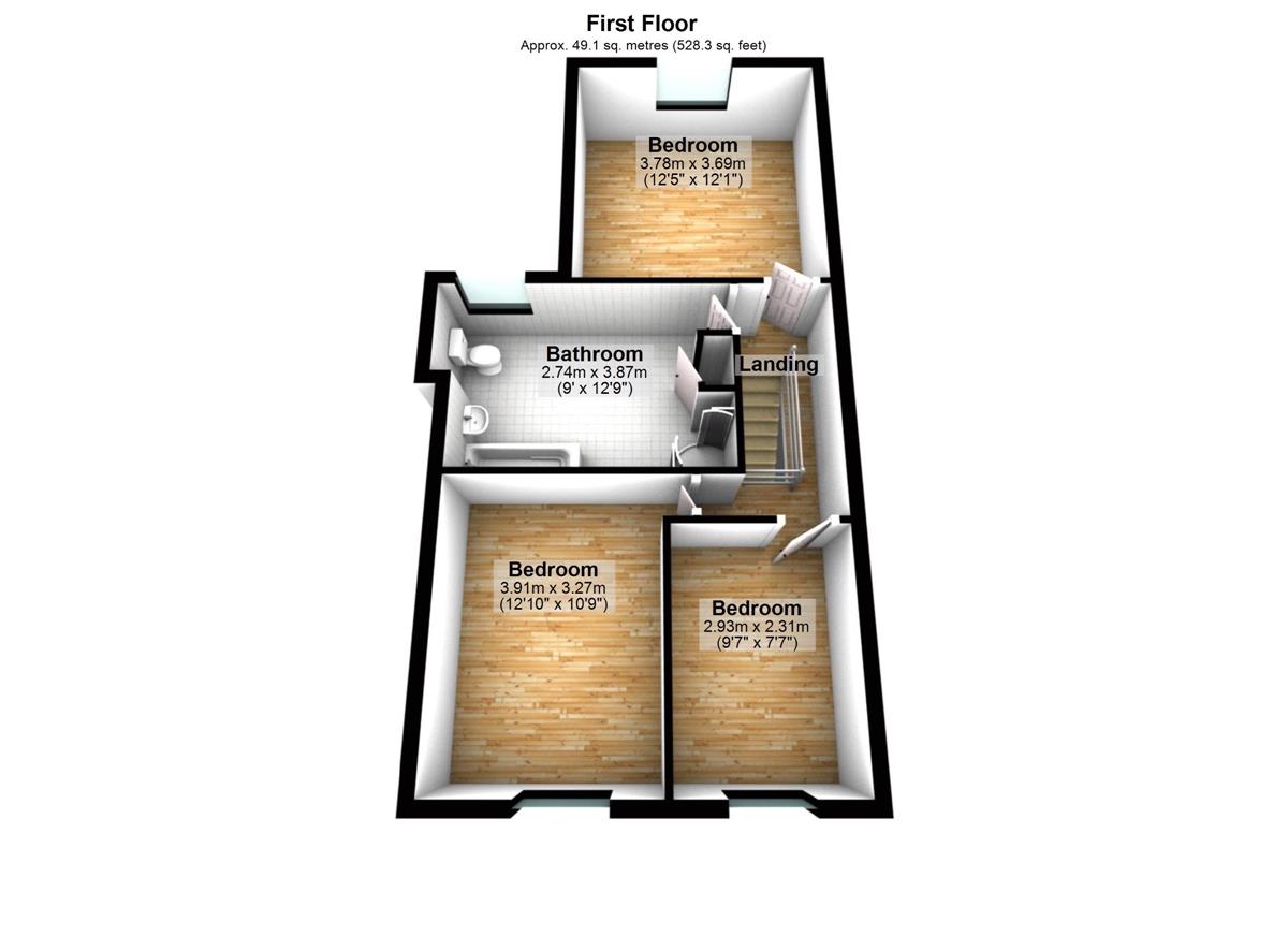 Bedroom 3 w: 2.19m x l: 2.81m x h: 2.54m (w: 7' 2" x l: 9' 3" x h: 8' 4")