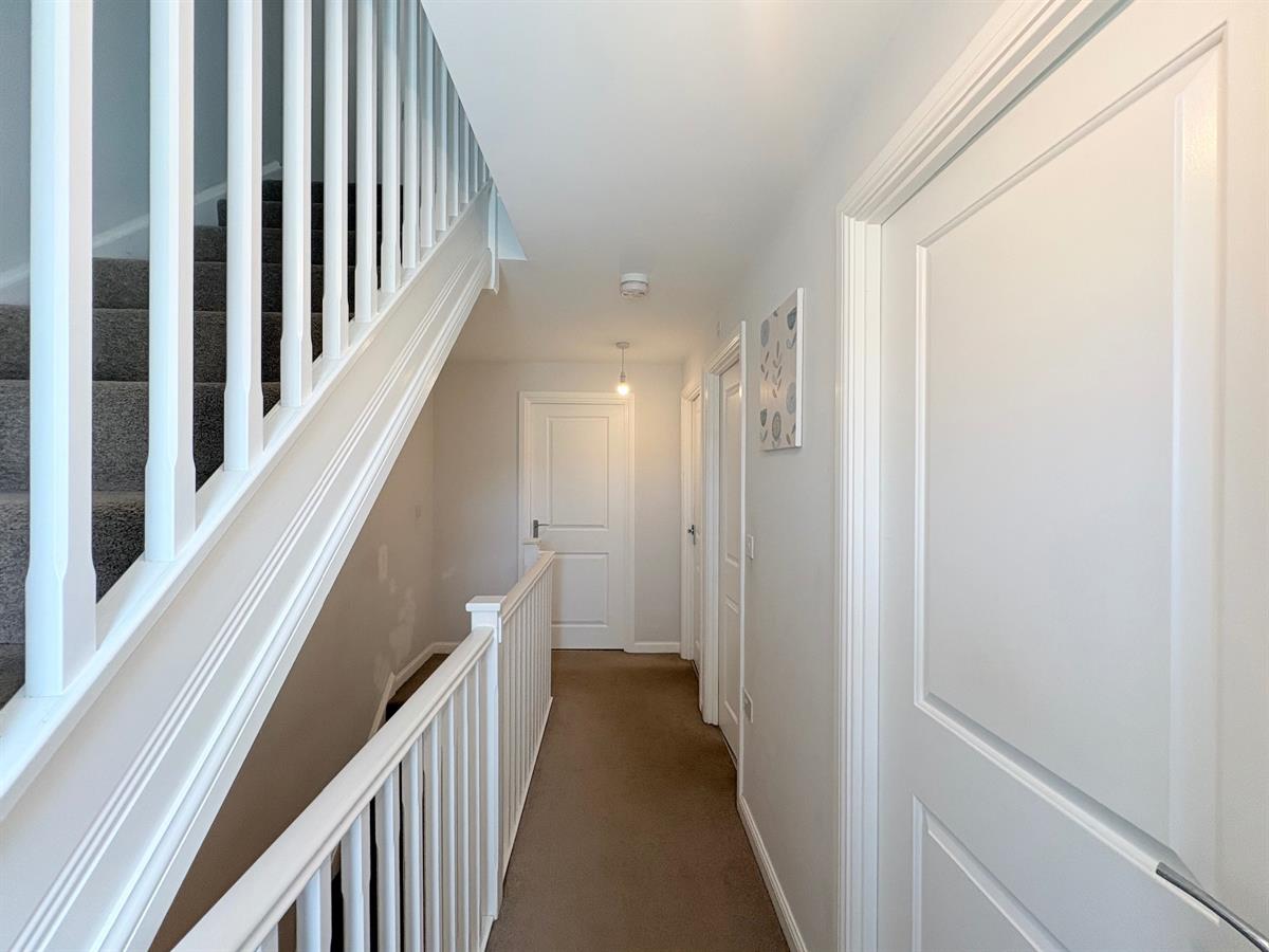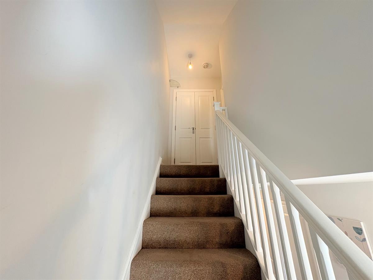 UPVC double glazed window to front aspect, plain ceiling, plain walls, carpet flooring, radiator, doors leading to all first floor rooms, stairs leading the second floor.