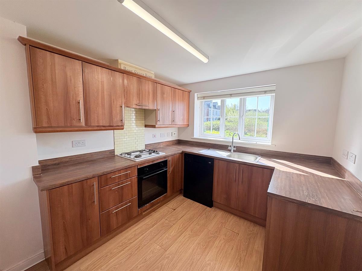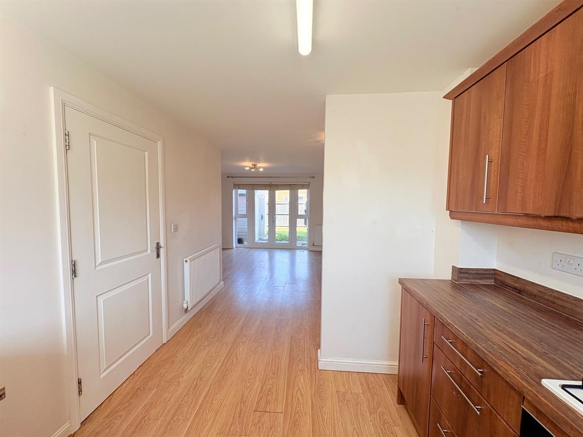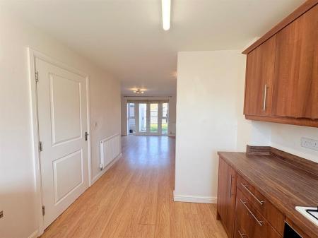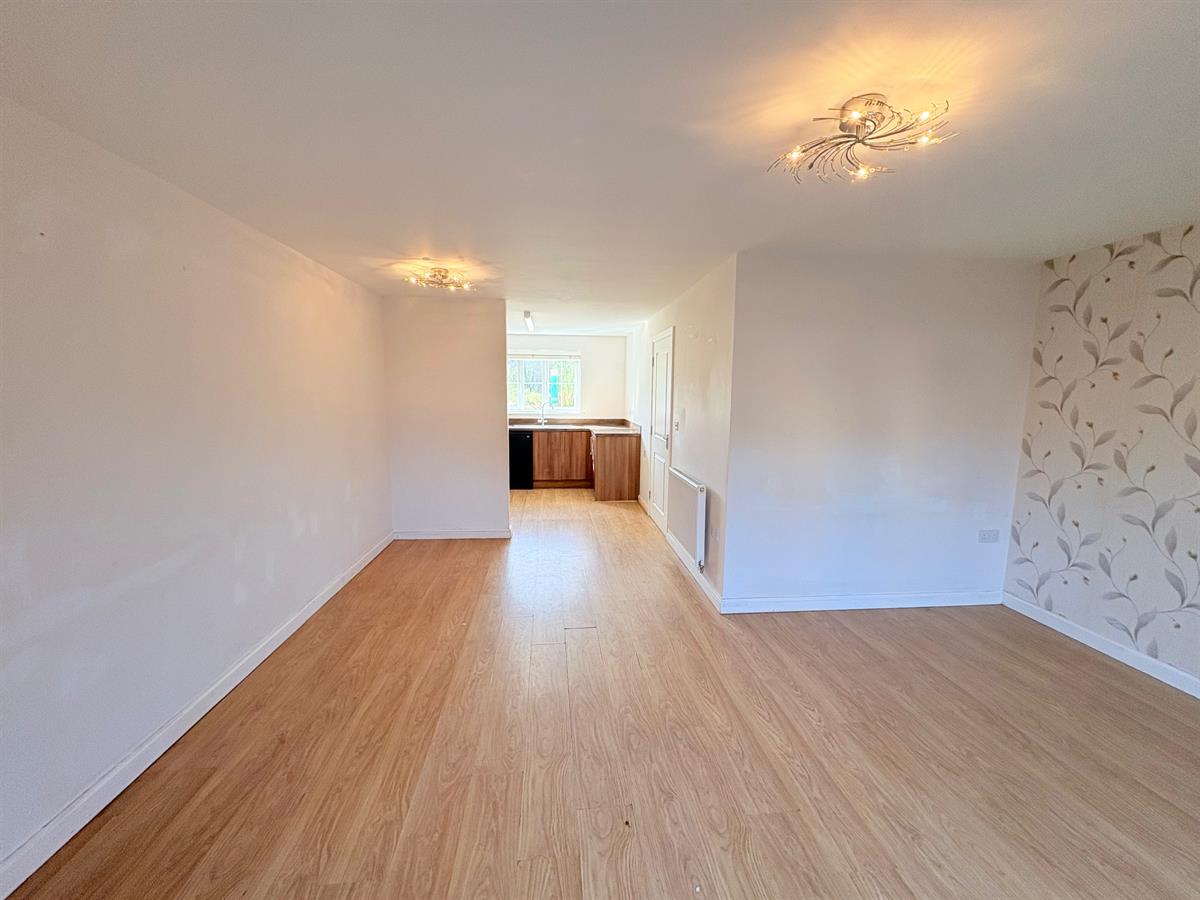 Open plan living, To the Kitchen area UPVC double glazed window to front aspect, matching wall and base units with complimentary work surface, space for fridge/freezer, plumbing for dishwasher, integrated oven and hob with extractor hood over, stainless steel sink/drainer.