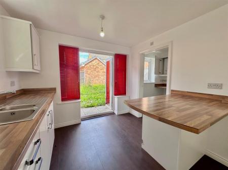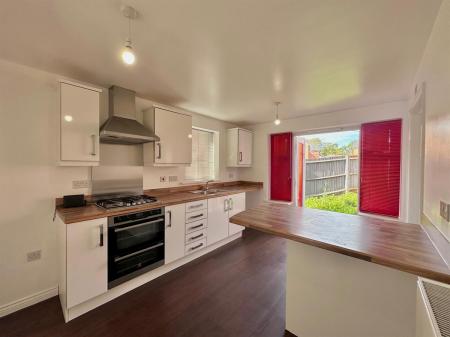 The modern kitchen is fitted with a breakfast bar and flows through an open archway into the dining area, creating a sociable layout ideal for family meals. The kitchen also has its own set of patio doors leading to the garden, along with access to a separate utility room - a highly practical addition for everyday living.