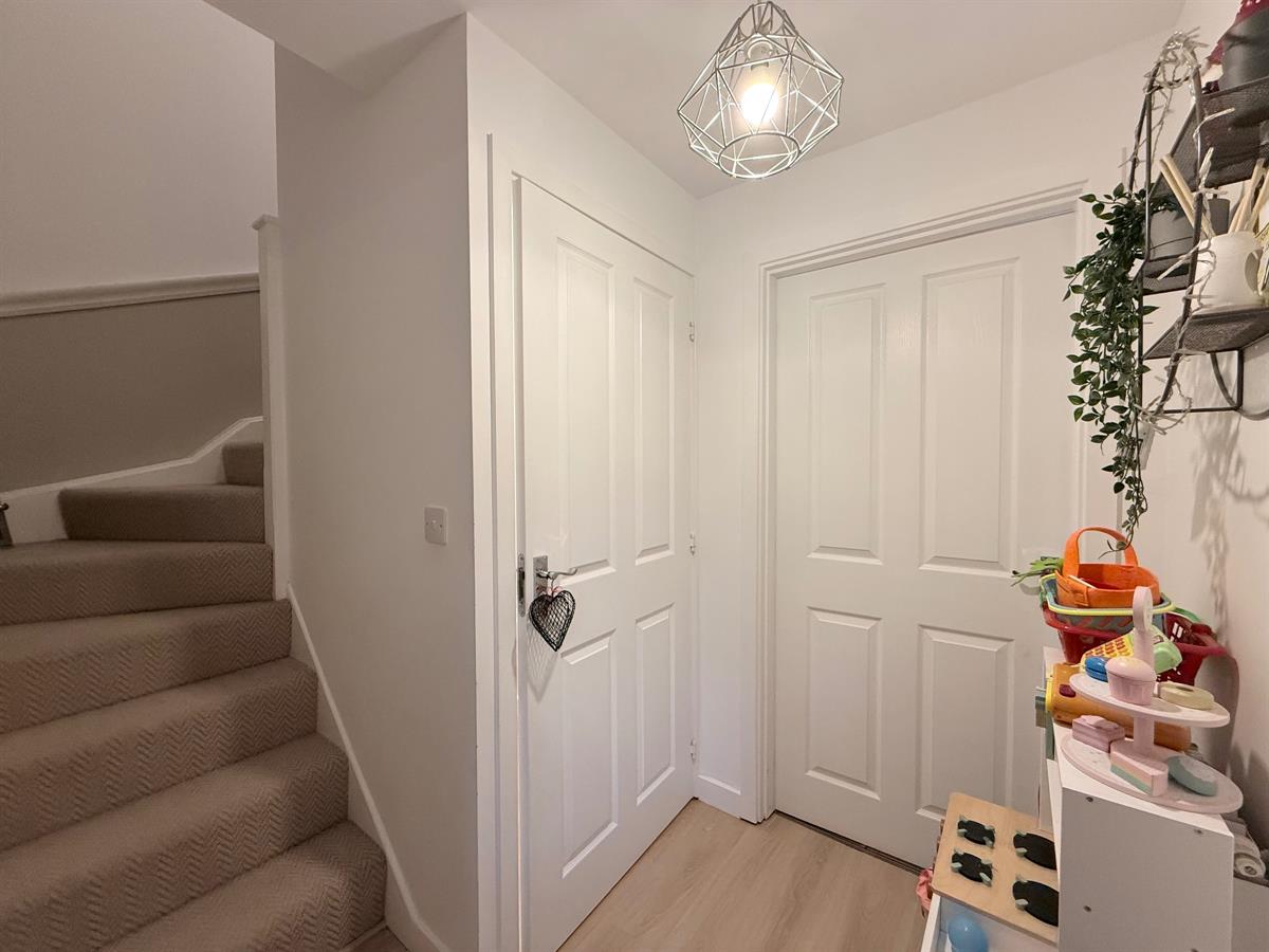 Inside, you're welcomed by a light and inviting entrance hall leading into a comfortable living room, perfect for relaxing and entertaining. From the lounge, a hallway provides access to a downstairs WC and understairs storage, leading on to a modern kitchen/diner at the rear of the home. The kitchen offers a range of fitted units and space for a dining table, with large patio doors that open directly out to the garden, allowing plenty of natural light to flow in.