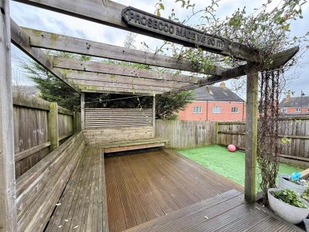 The rear garden is both generous and low maintenance, featuring a large patio area, a pergola with built-in seating, and a small section of artificial grass - ideal for enjoying the outdoors with minimal upkeep.