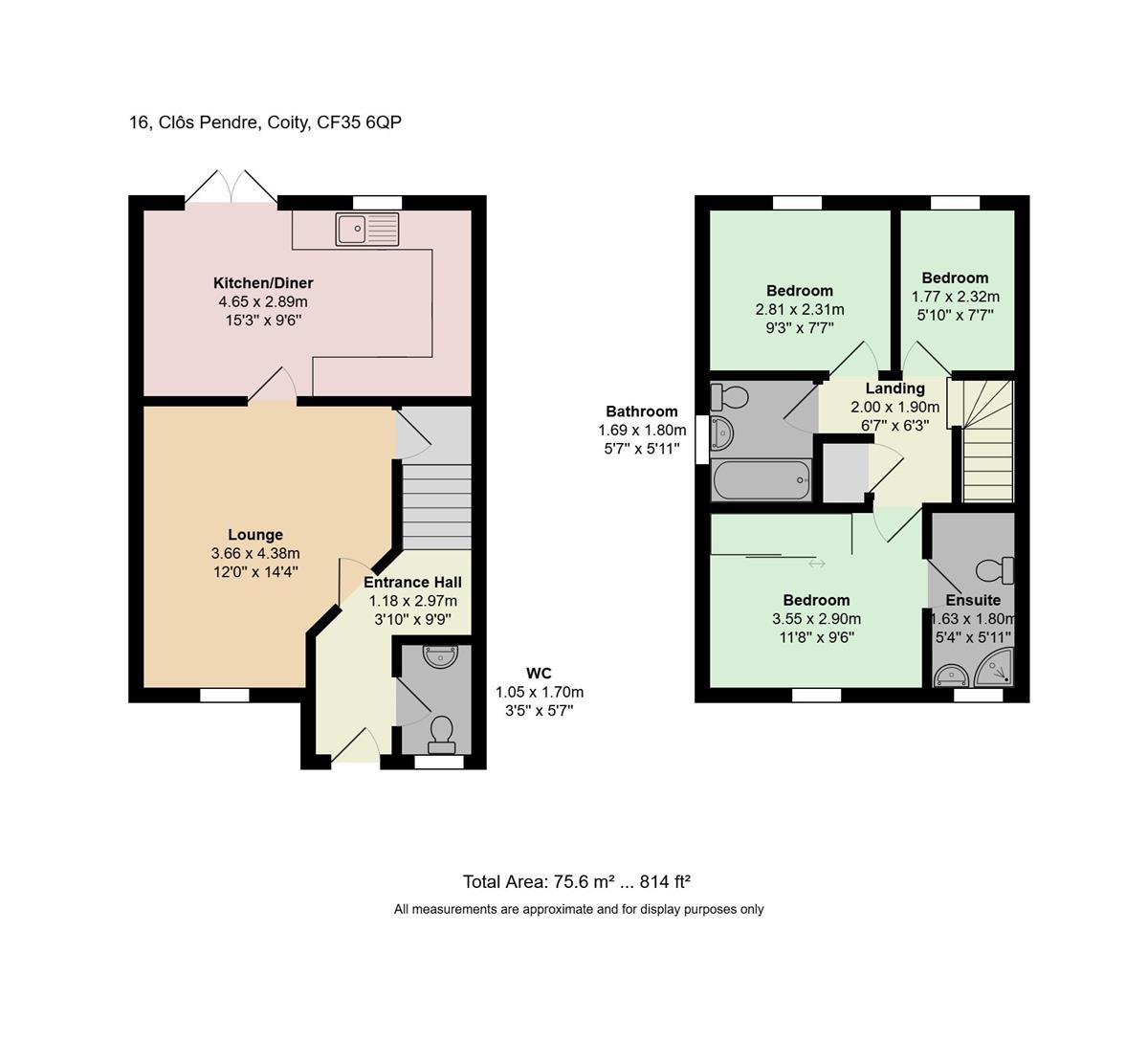 Bedroom 1 w: 3.55m x l: 2.9m x h: 2.27m (w: 11' 8" x l: 9' 6" x h: 7' 5")