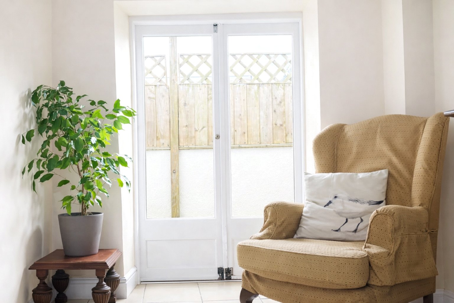French doors opening to a rear patio area.