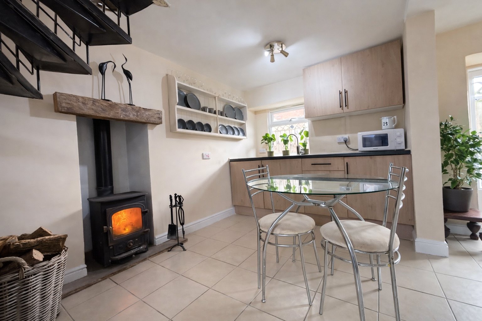 - sitting and dining room with woodburner.