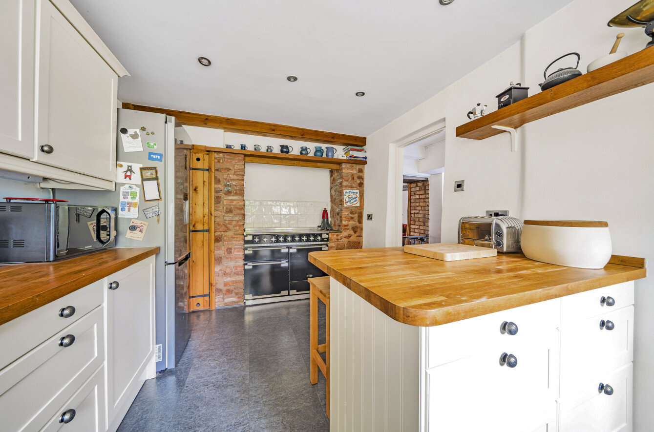 The well-equipped kitchen boasts modern base and wall units with timber worktops, an integrated dishwasher and washing machine, space for a tall fridge freezer, and a stylish Rangemaster induction hob and oven (available by separate negotiation). Adjacent to the kitchen is a snug an ideal spot to unwind with views over the rear garden and access via patio doors. A useful cloakroom with storage completes the ground floor.