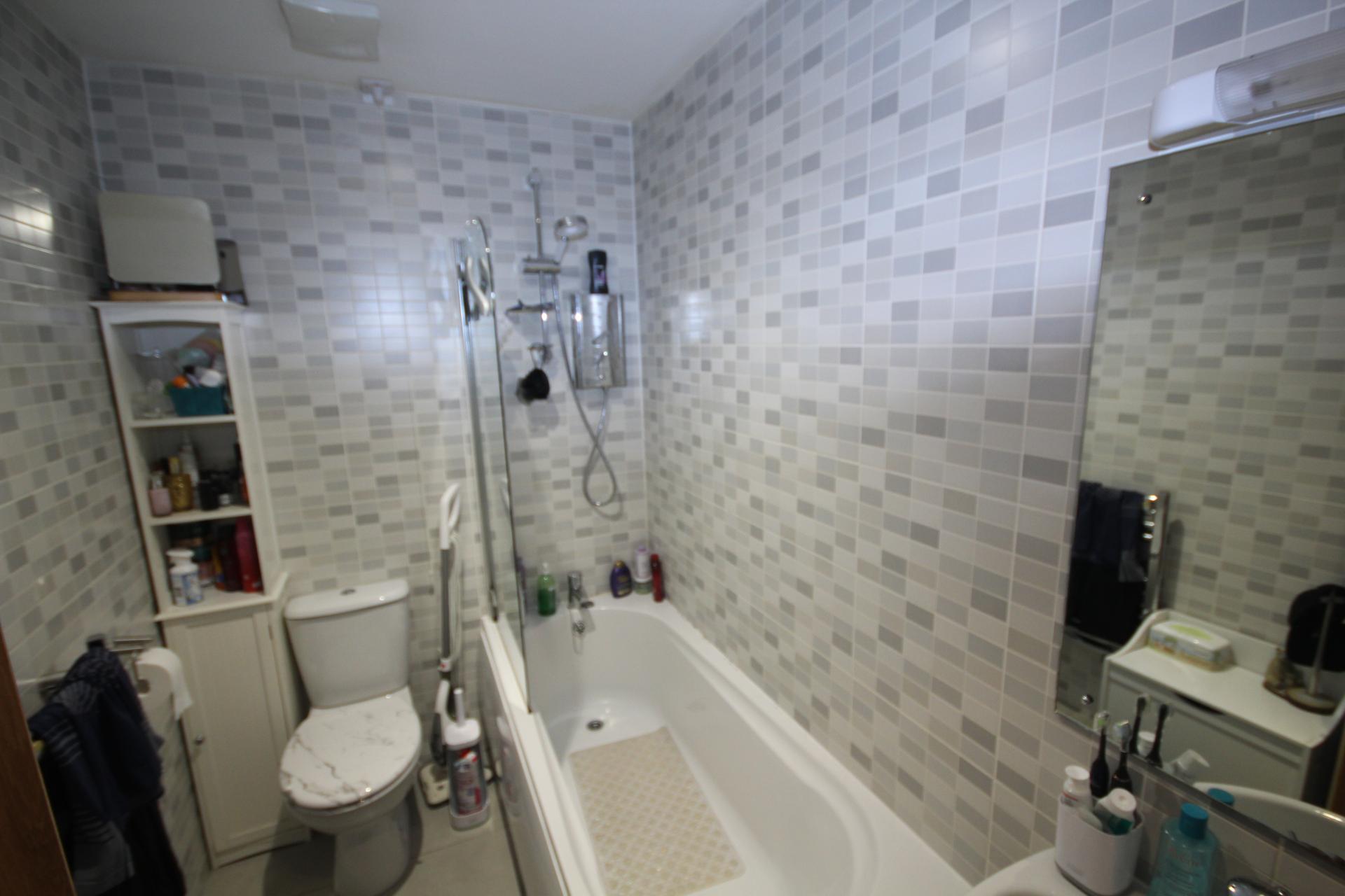 BATHROOM Fully tiled with modern white suite comprising closed coupled WC, pedestal wash hand basin with mirror, striplight and shaver point over. Panel sided bath unit with electric shower unit and glazed courtesy screen. Heated towel rail. Extractor unit. Inset ceiling spot lights.