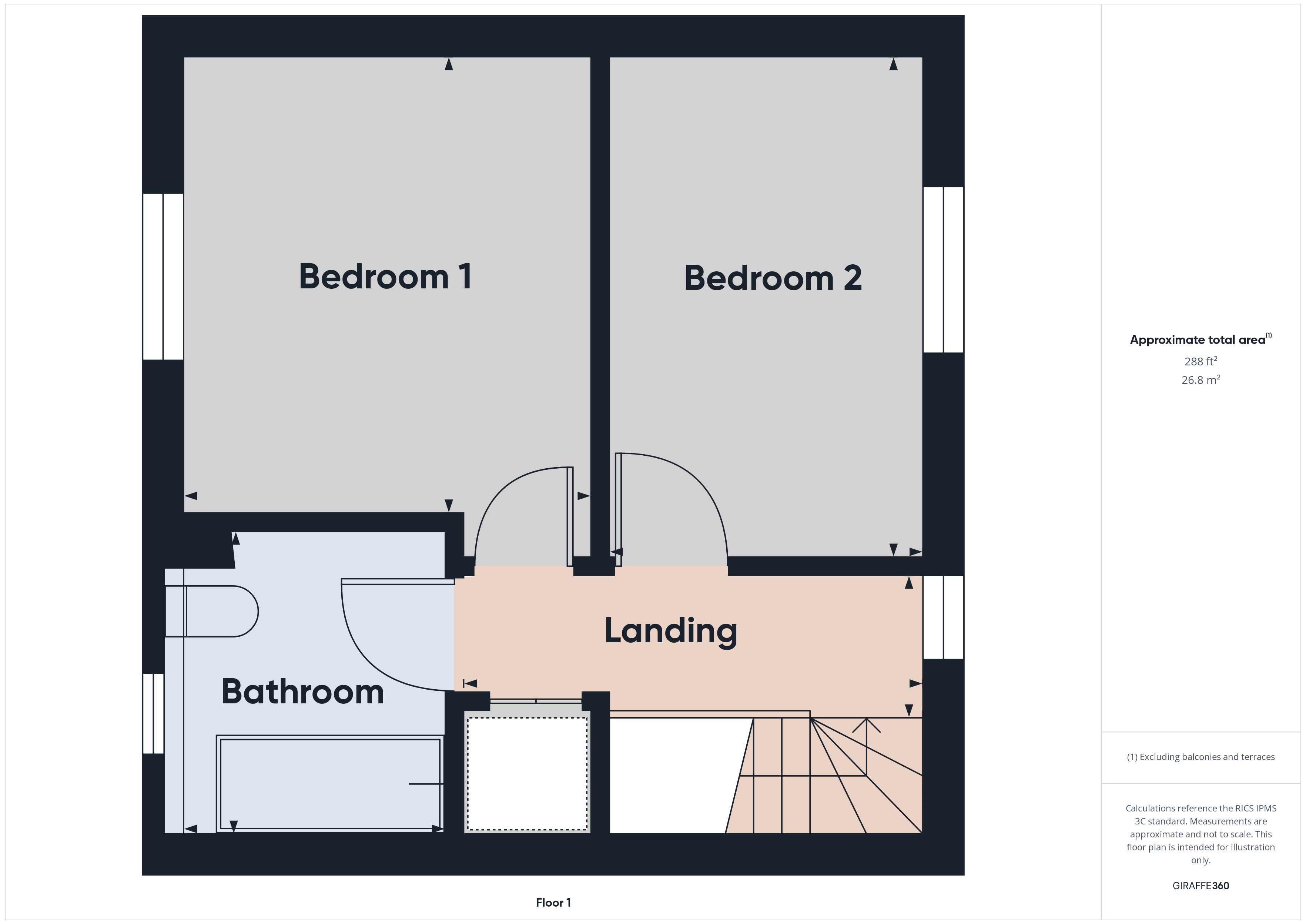 BEDROOM 1 10’10” x 10’0” 2 double wardrobes and central dressing table. Radiator. Access to roof space.