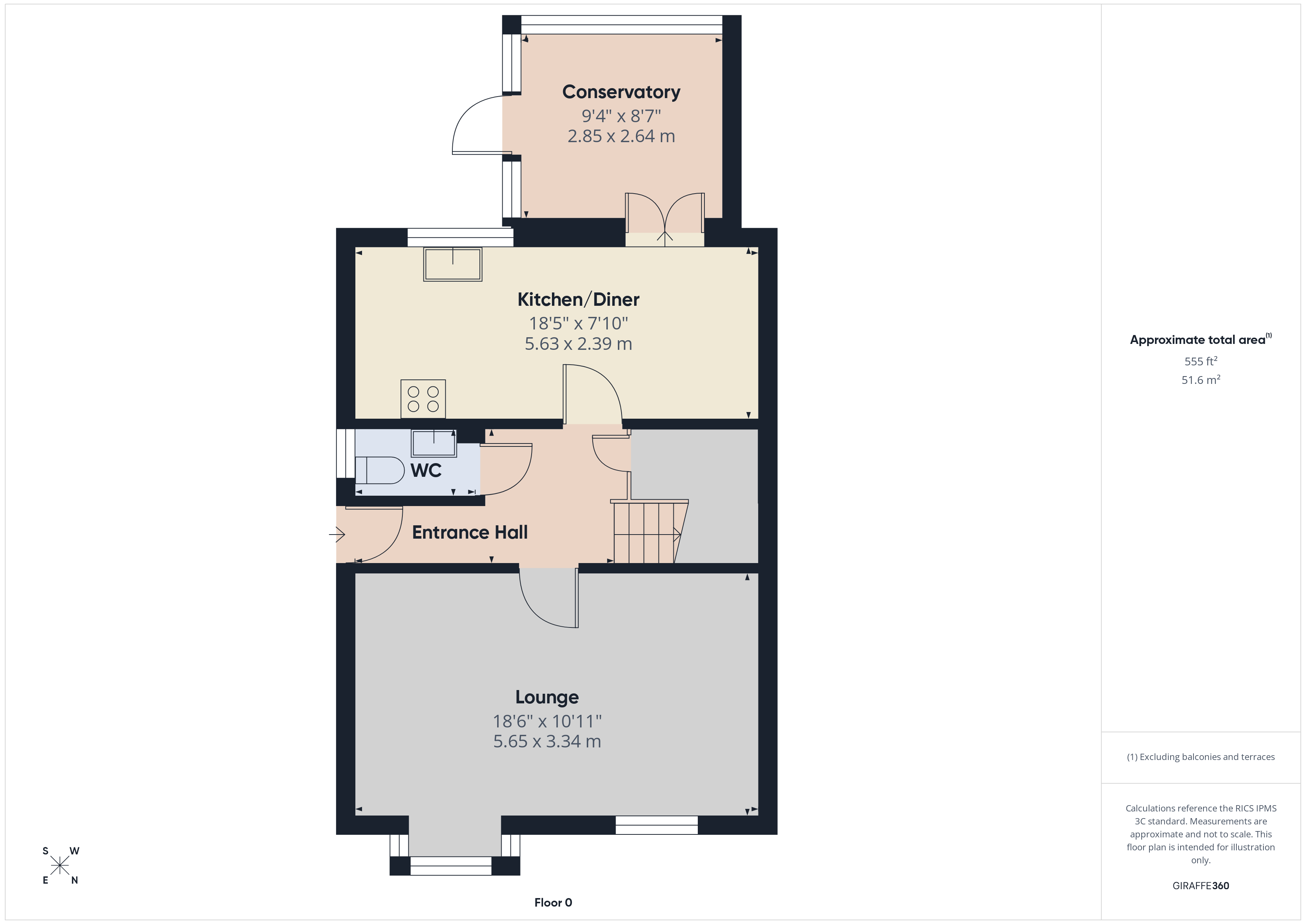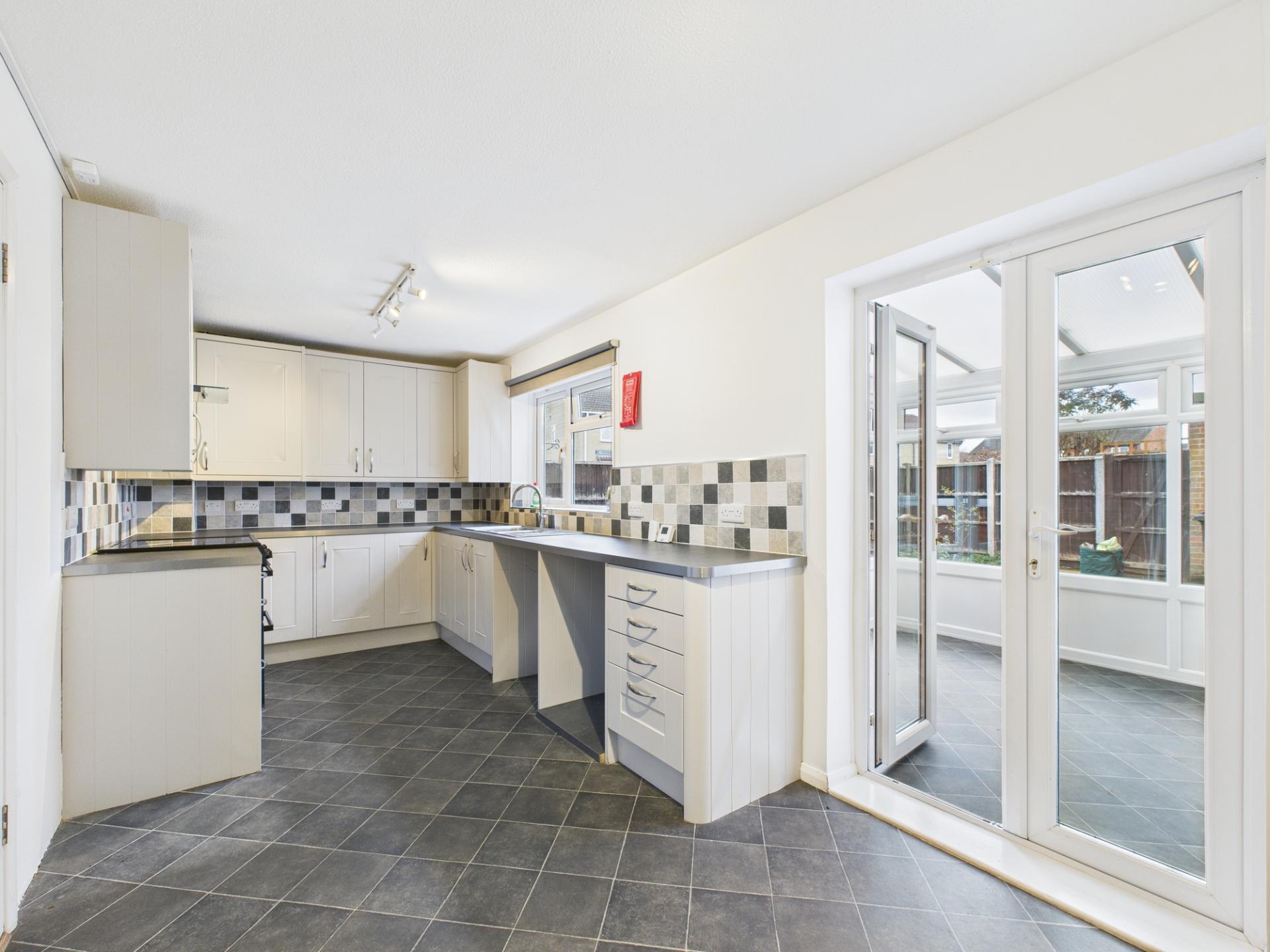 KITCHEN/DINER 18’5” x 7’10” (5.63m x 2.39m) Range of wall and base units with work surfaces over, having inset one and half bowl sink/drainer, space for cooker with fitted extractor hood over, plus space and plumbing for washing machine and dishwasher. UPVC double glazed window and French doors into Conservatory. ‘Worcester’ boiler.